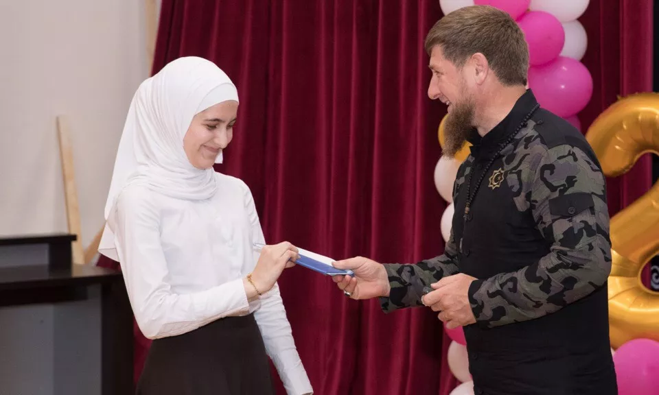 «Поздравляю мою дорогую племянницу Хадижат Кадырову, которая за отличную учебу и примерное поведение получила золотую медаль и аттестат бордового цвета, — сказал Даудов. — Именно сегодняшние выпускники школ и студенты в будущем станут полезными для нашего народа и будут трудиться на пути Великого Ахмат-Хаджи».