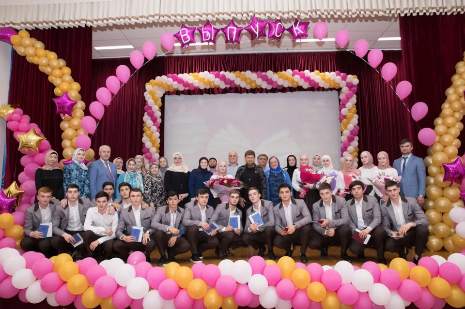 Аттестаты вручили 24 выпускникам, семеро из них получили золотую медаль, в том числе дочь главы Чечни Рамзана Кадырова Хадижат. Племянник руководителя республики Абубакар Кадыров окончил школу с отличием.