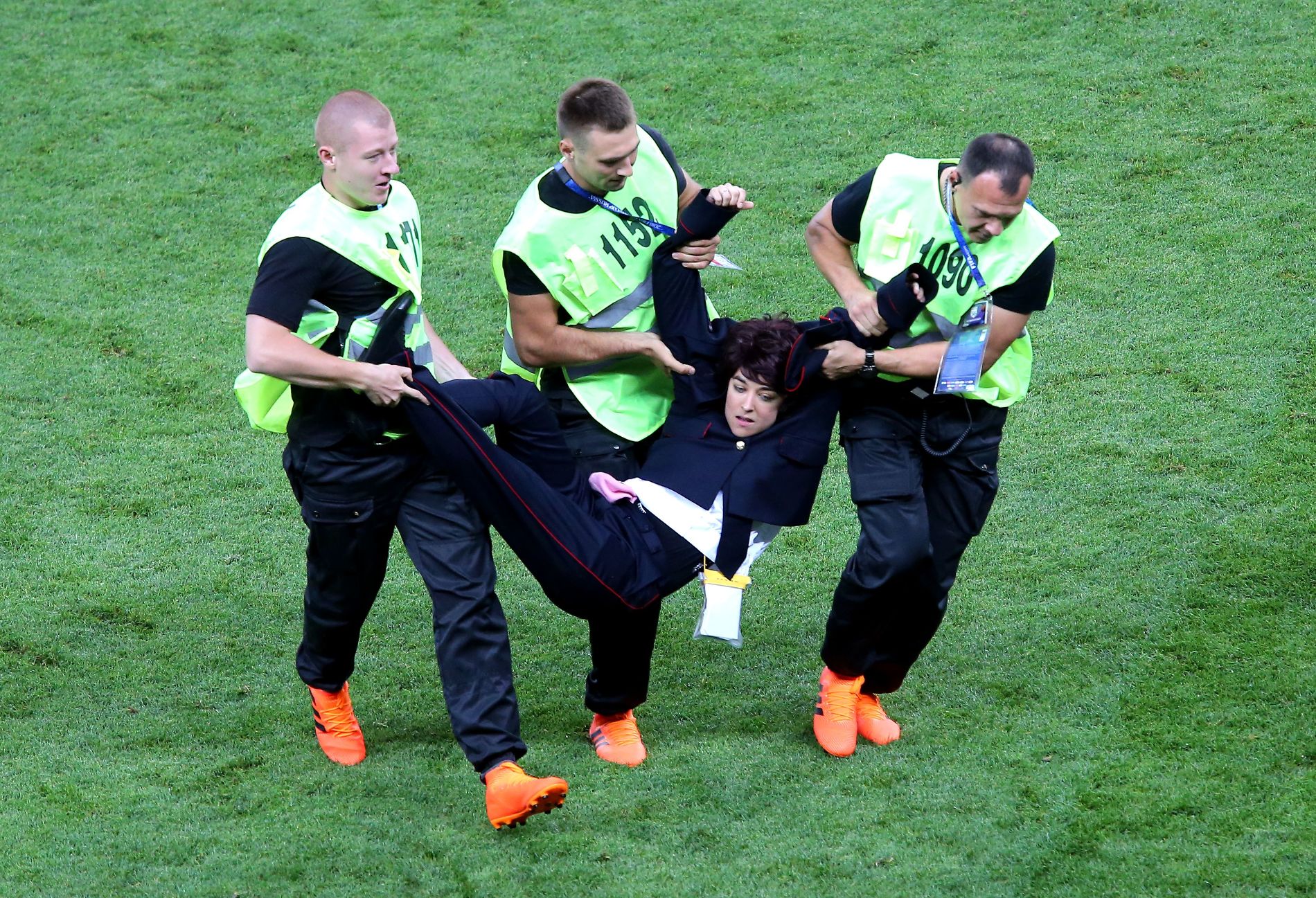 Четыре участника группы Pussy Riot 15 июля во время финального матча Франция — Хорватия выбежали на поле на стадионе «Лужники»