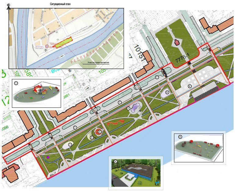 Здесь появятся пешеходные дорожки, велодорожка, газоны, будут высажены деревья, в том числе взрослые, и кустарники. Будут построены тематическая и спортивная площадки, оборудуют скейт-парк, уличные тренажеры, установят игровое оборудование. В проекте предусмотрены выходы на аллею из близлежащих дворов. А на центральной площадке, на которую будет выходить Платановый бульвар, планируется проводить культурно-массовые мероприятия. Запланированы также все элементы благоустройства — садовые диваны, урны, фонари, декоративное ограждение.