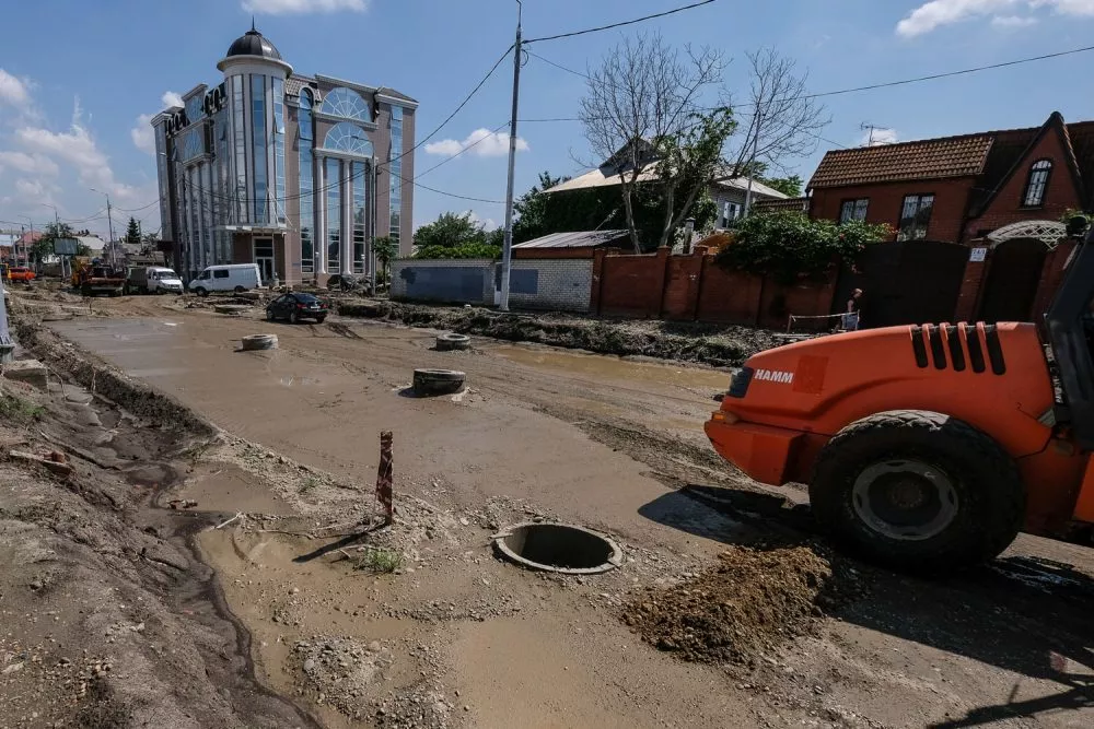 В Краснодаре на улице Тургенева из-за ливней приостановили работы по формированию основания дороги