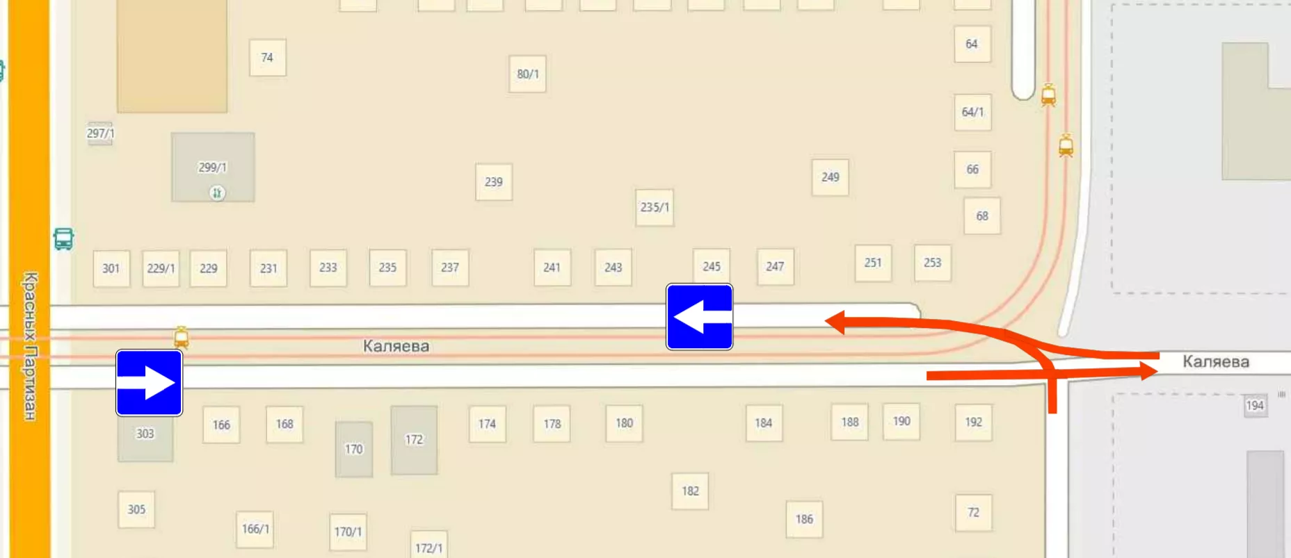 Сейчас на этом участке завершаются работы по реконструкции трамвайного переезда, строительство которого проинвестировала компания «АлМакс-Строй», возводящая неподалеку жилой комплекс. Также заасфальтирован участок Каляева от Гагарина до Красных Партизан, где раньше была гравийная дорога.