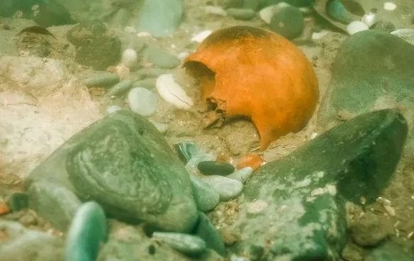 Исследователи сначала расчистили участок под водой размером 8 на 8 метров. Глубина раскопа составила 1,5 метров. Череп лежал у древнего причала и волнолома.