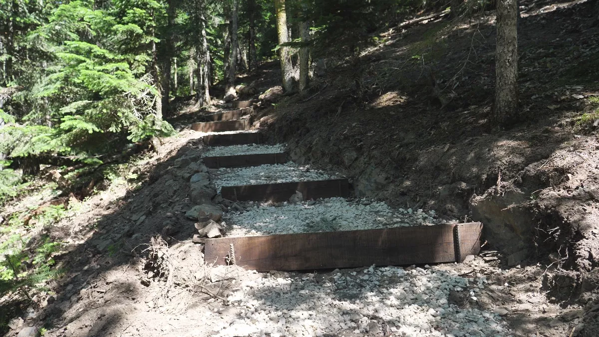 Волонтеры сделали разметку и маркировку тропы, расчистили путь от кустарников и поваленных деревьев, оборудовали крутые участки ступенями, укрепили осыпающиеся склоны.