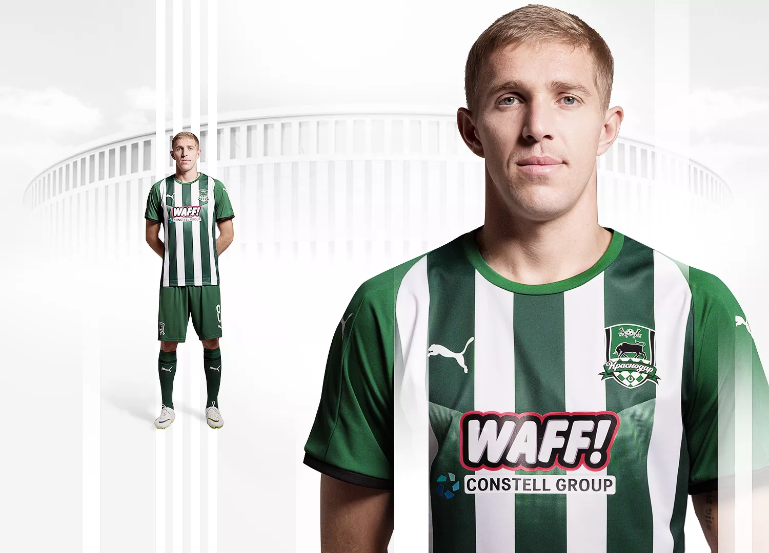 Футболки выполнены в базовых клубных цветах в белую и зеленую вертикальную полосу. Такой дизайн ранее не использовали в игровой форме «Краснодара», отметили в пресс-службе клуба.