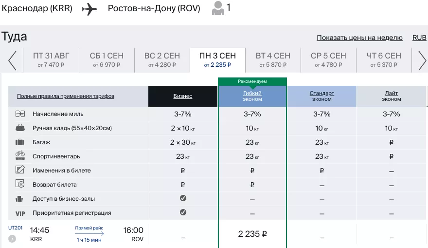 Авиакомпания Utair в сентябре запустит прямой рейс из Ростова-на-Дону в Краснодар