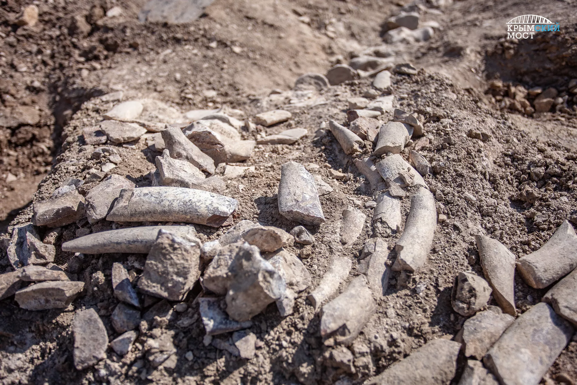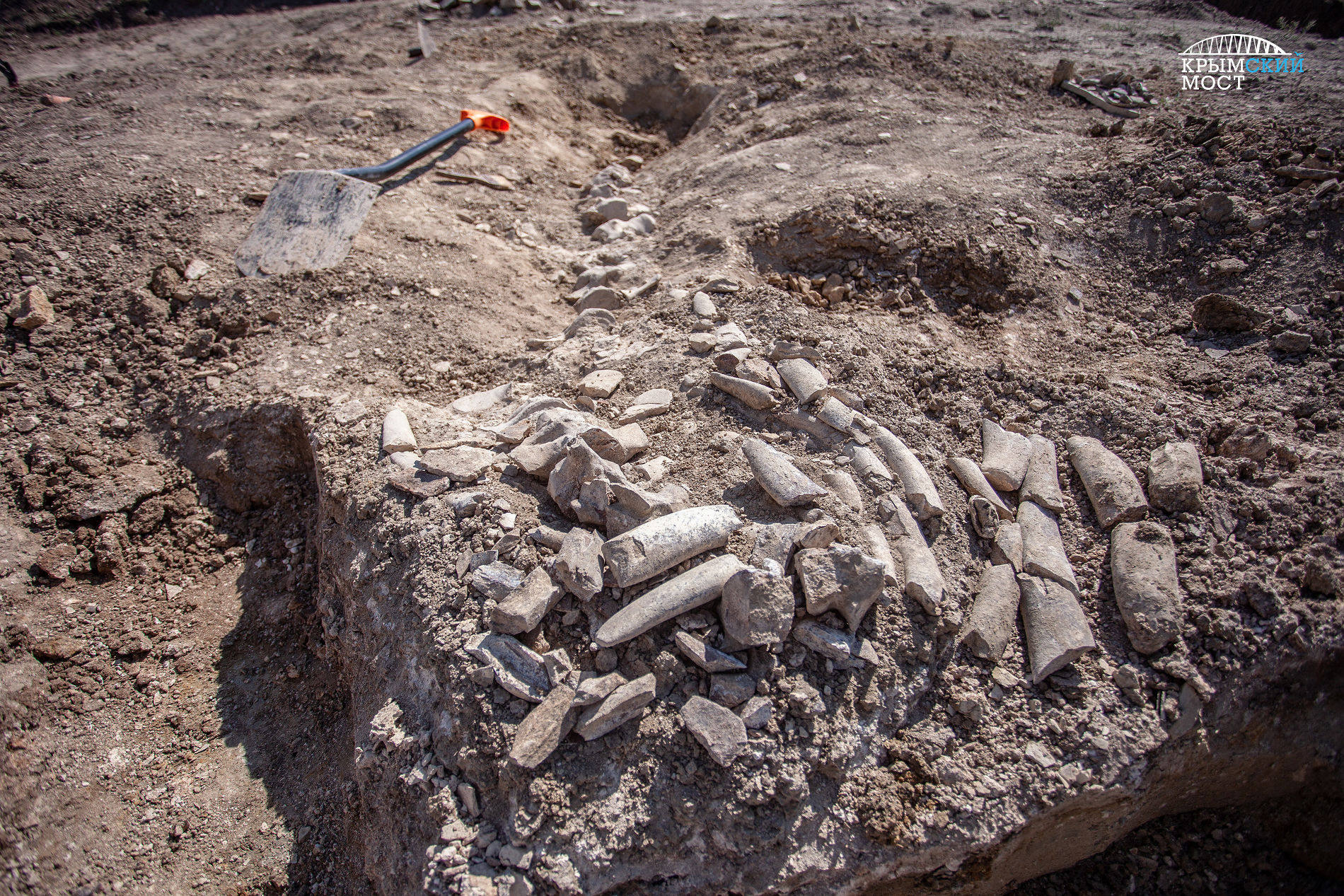 Во время раскопок, предваряющих строительство железнодорожного подхода к Крымскому мосту, археологи нашли на глубине около 1 метра фрагменты скелета — позвоночный столб и ребра.