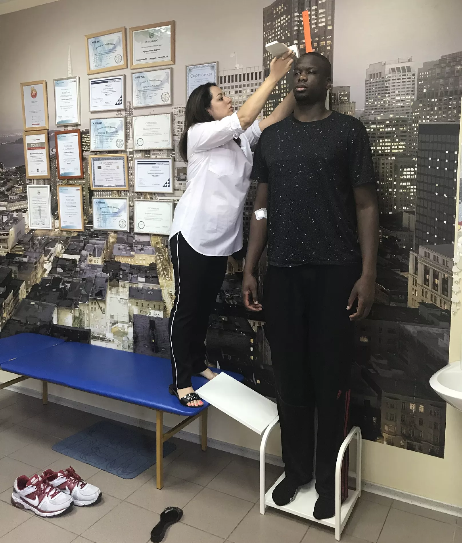 С измерением роста баскетболистов у медперсонала возникли проблемы. В частности, для высоты новичка Мустафы Фалля не хватило ростомера.