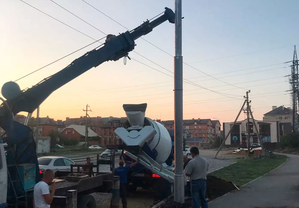 В Краснодаре на улице Восточно-Кругликовской 22 августа начали устанавливать опоры освещения и контактной сети троллейбуса