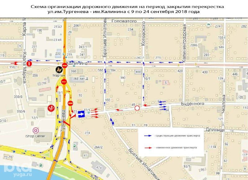 Как сообщали Юга.ру, перекресток частично закрыли в ночь на 10 сентября на две недели — до 24 сентября. Там проводятся работы на магистральном ливневом коллекторе в рамках капремонта улицы Тургенева.