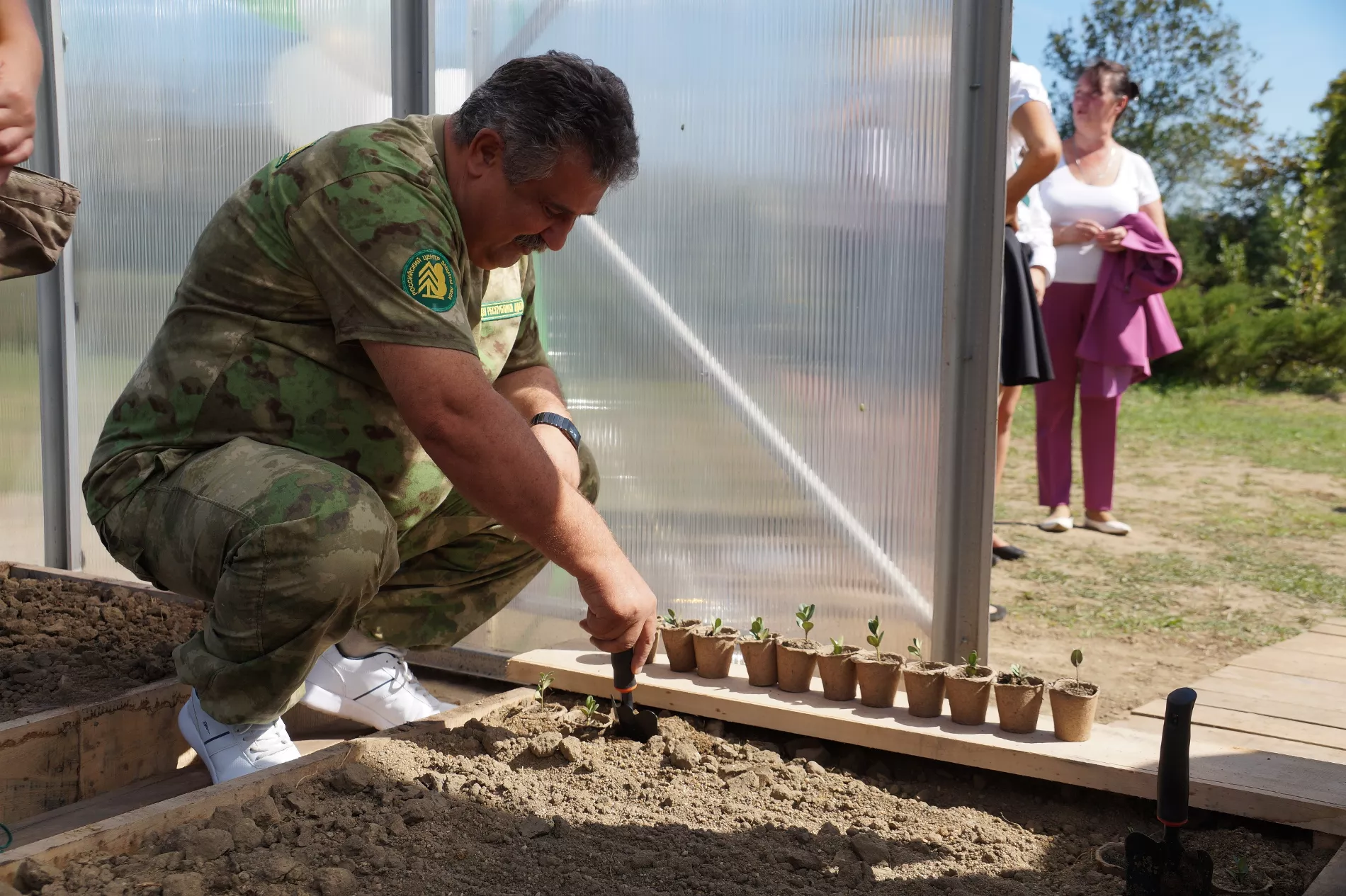 На церемонии открытия посадили первые 300 черенков самшита. Теплица вмещает 25 тыс. растений, однако эксперты рассказали, что полностью засадить школки в питомнике получится только в следующем году. Сейчас нет нужного количества посадочных материалов.