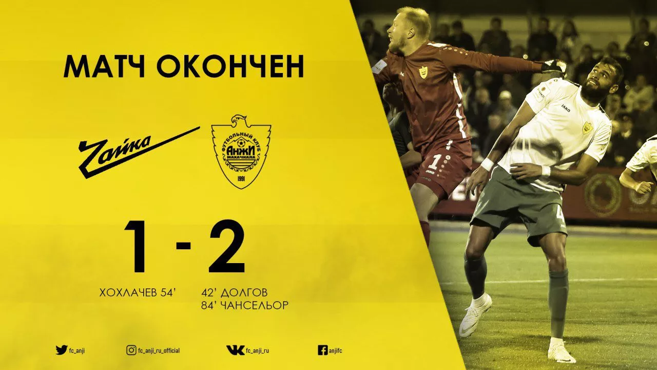 Встреча, прошедшая на стадионе «Центральный» в селе Песчанокопском, завершилась со счетом 1:2. Счет желто-зеленые открыли в конце первого тайма — на 40-й минуте отличился форвард Павел Долгов. На 57-й минуте нападающий хозяев Александр Хохлачев сравнял счет. На 84-й минуте защитник «Анжи» Джон Чансельор забил победный для команды гол.