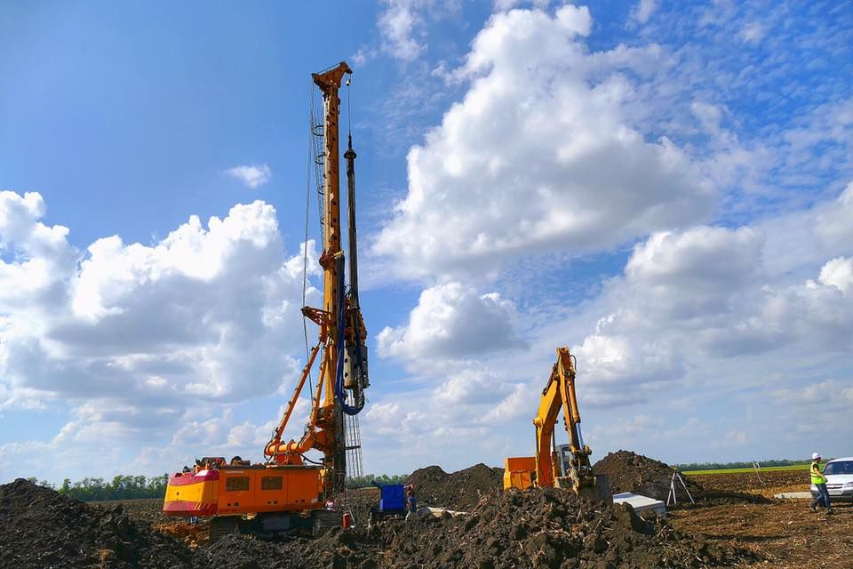Сейчас на объекте работают буровые установки, ведется производство арматурных каркасов, укладка фундамента для возведения 60 ветробашен высотой от 75 до 135 метров.