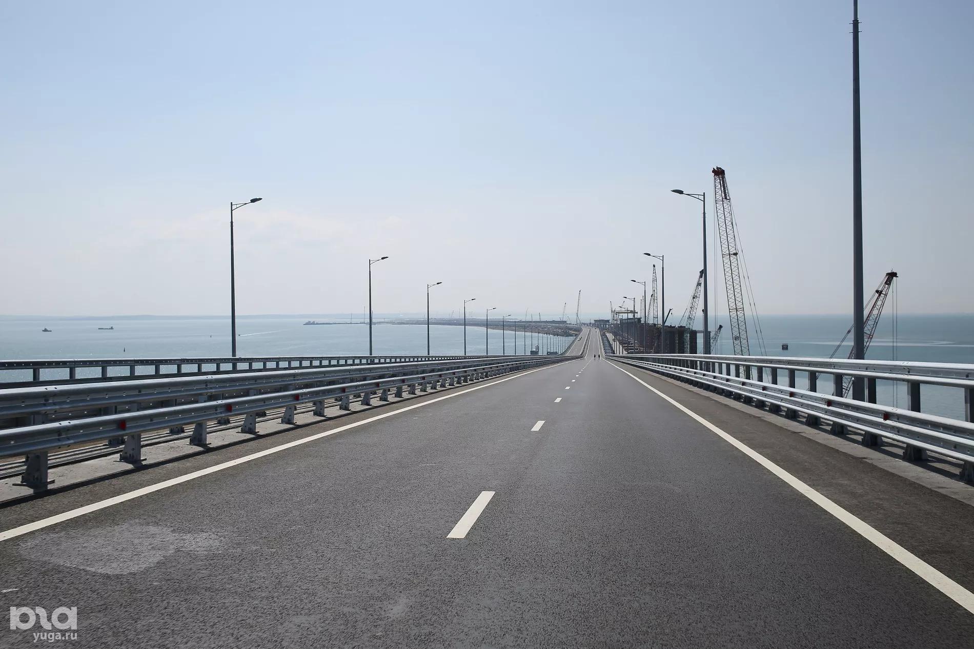 Съемку нового моста, соединившего Кубань и Крым, провели в ясный день с автомобиля, ехавшего из Керчи в направлении Таманского полуострова.