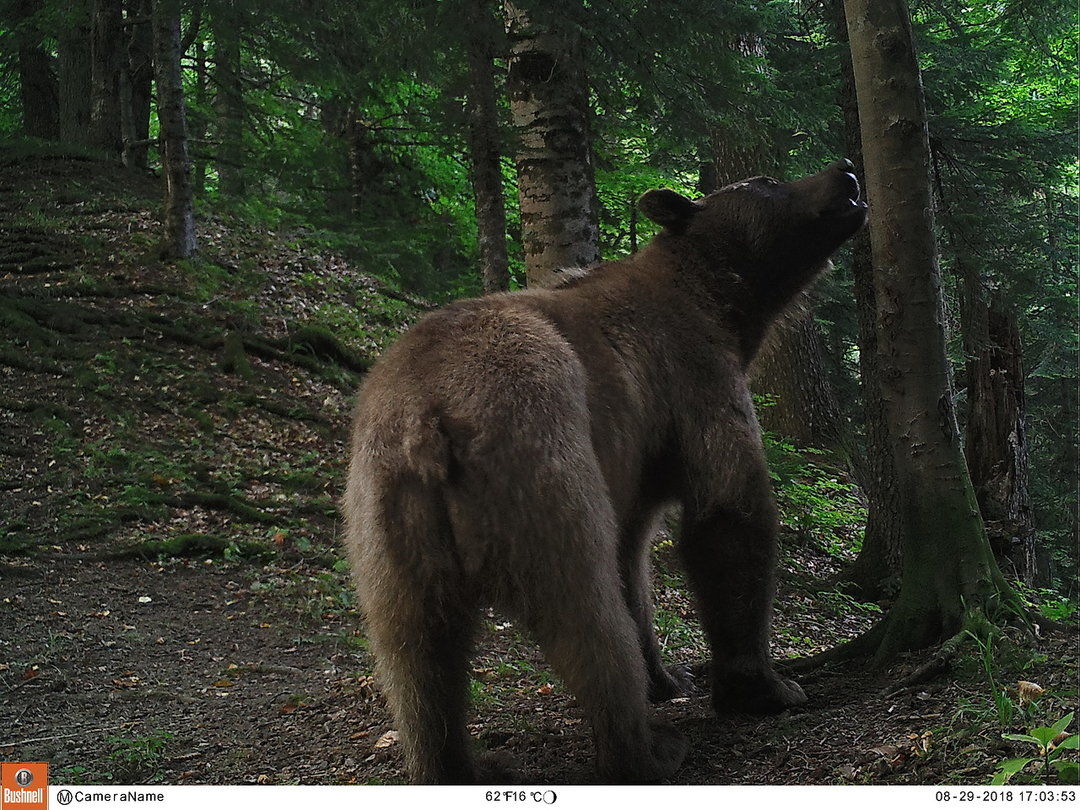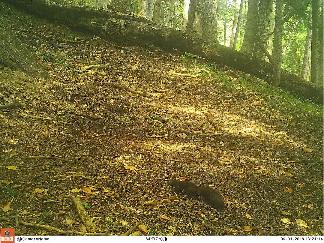 Фотоловушка в Кавказском биосферном заповеднике в летний период зафиксировала восемь видов животных у особого сигнального дерева