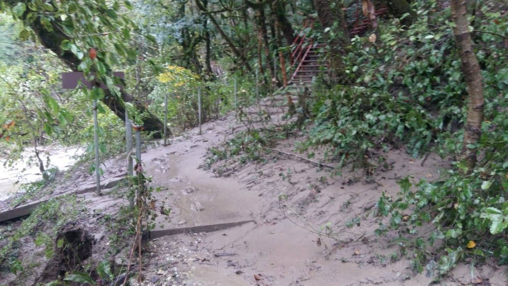 Мосты, переправы и часть троп в Тисо-самшитовой роще засыпало землей и камнями, упавшими деревьями, снесло потоками воды.