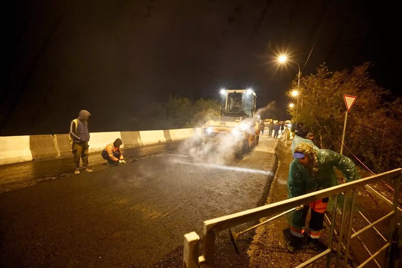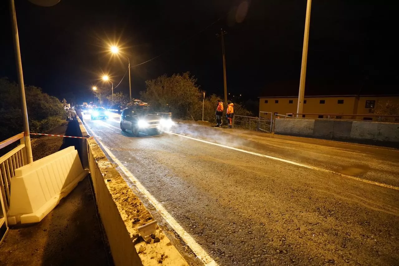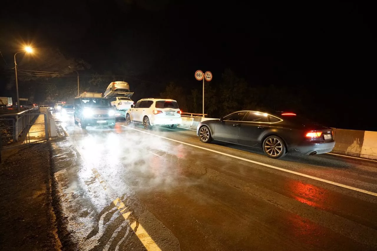 Для транспорта открыты две полосы, сообщили в пресс-службе Упрдор «Черноморье». На восстановленном участке подхода к мосту нанесли разметку.