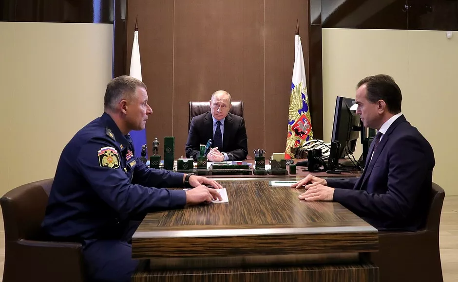 Президент России Владимир Путин 27 октября обсудил с губернатором Краснодарского края Вениамином Кондратьевым и главой МЧС РФ Евгением Зиничевым ход ликвидации последствий ЧС на Кубани
