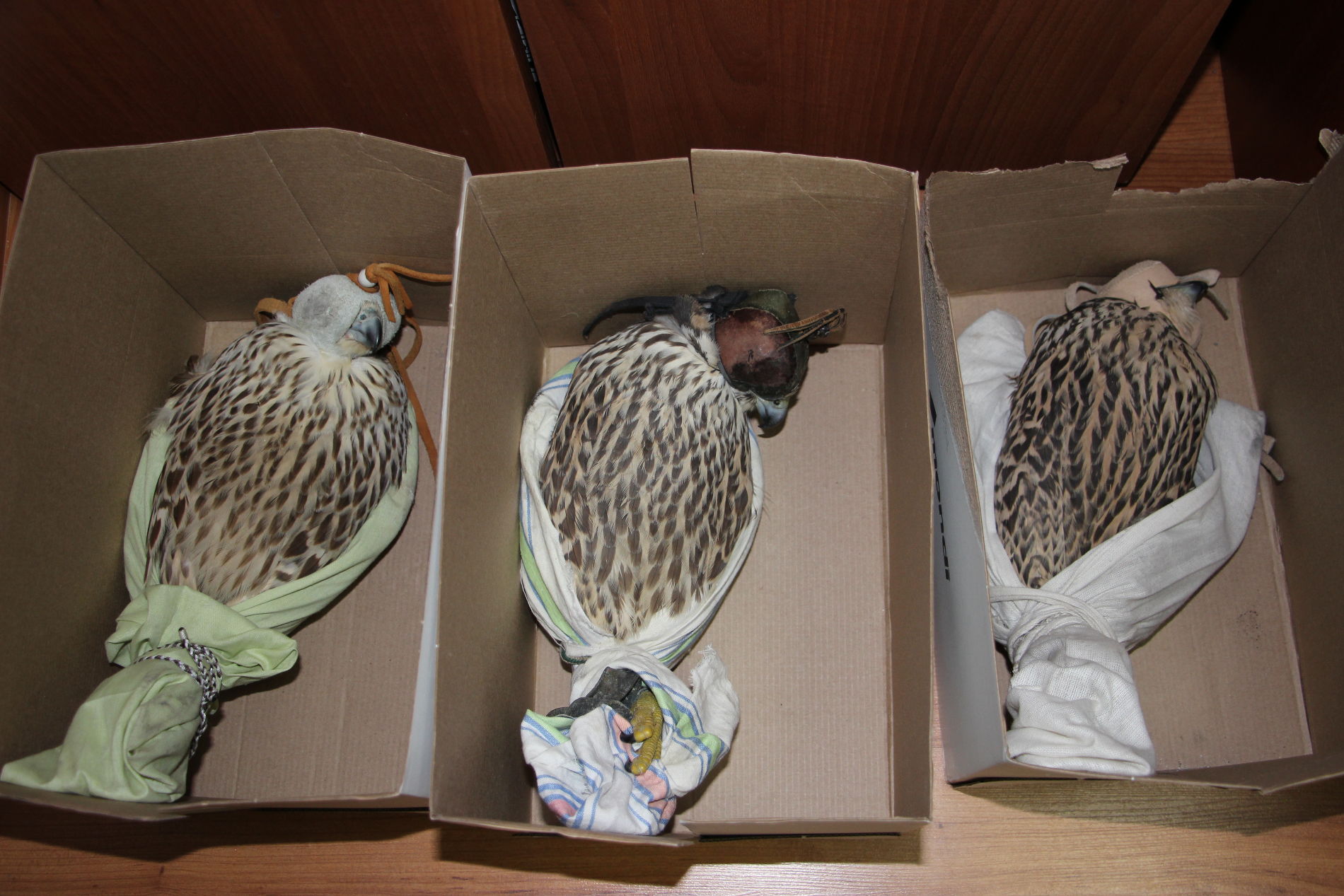 На Магарамкентском таможенном посту сотрудники ФТС и УФСБ по Республике Дагестан во время досмотра автомобиля Volkswagen Sharan нашли трех птиц. Краснокнижные соколы-сапсаны находились под капотом машины, следовавшей из России в Азербайджан.