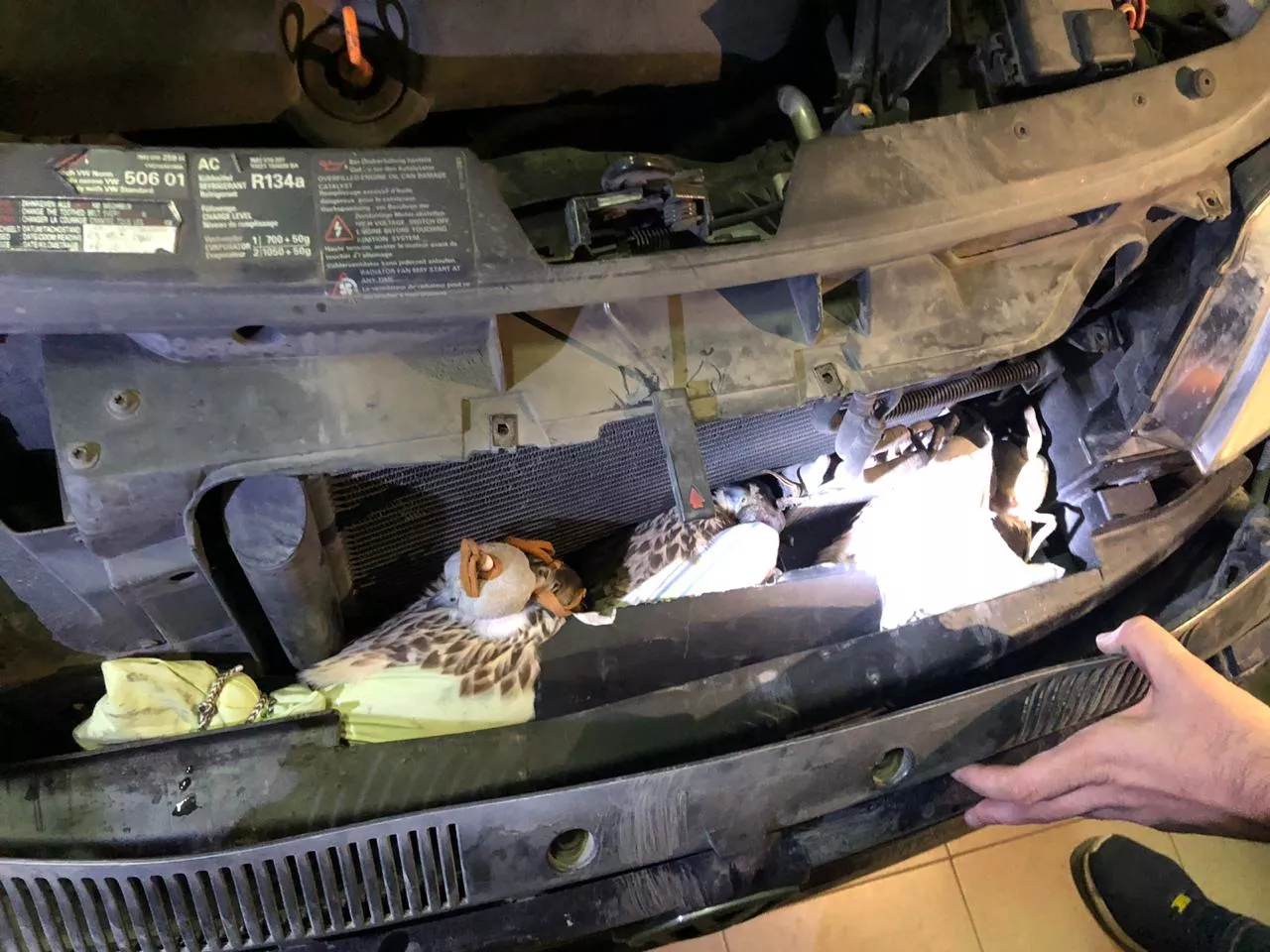 В Дагестане сотрудники таможни 12 ноября нашли под капотом автомобиля соколов-сапсанов