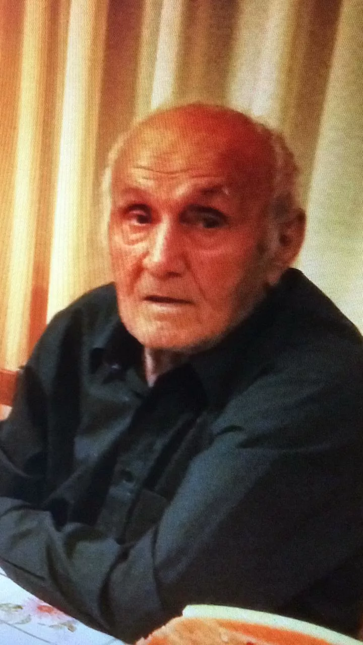 На вид ему 85-86 лет, рост 160 см, среднее телосложение, овальное лицо, карие глаза, прямой нос, узкие губы, седые короткие волосы.