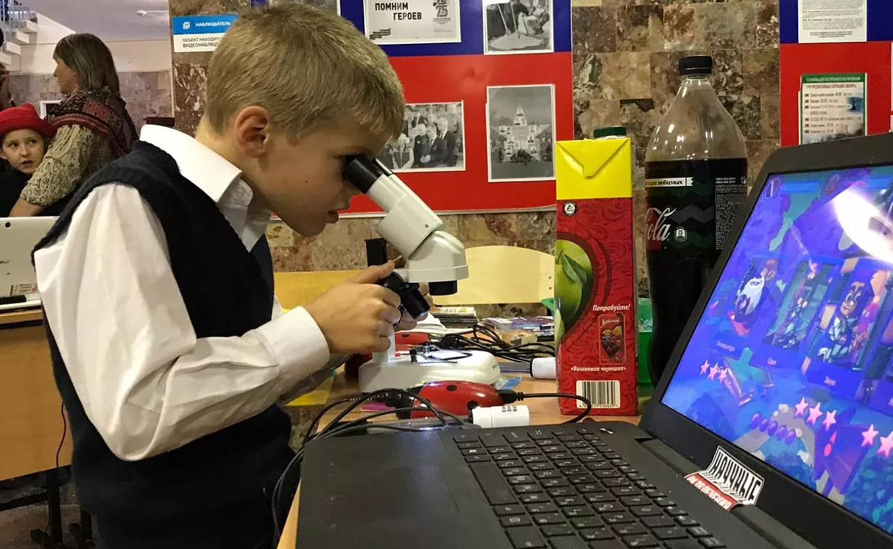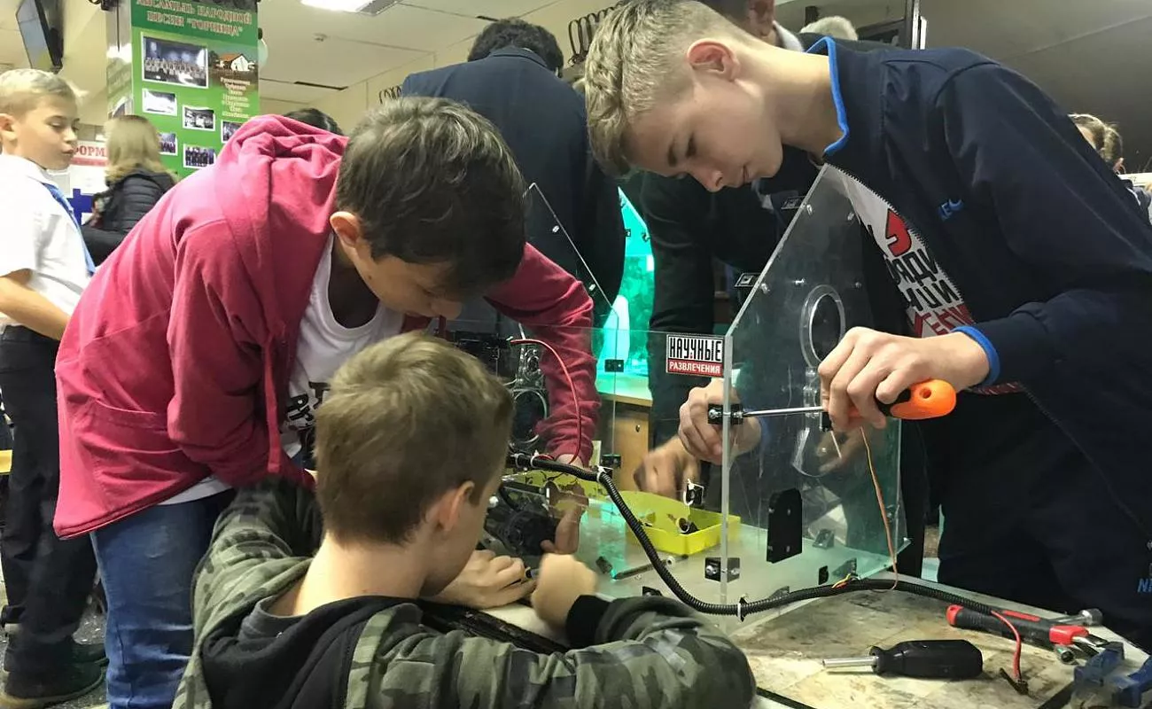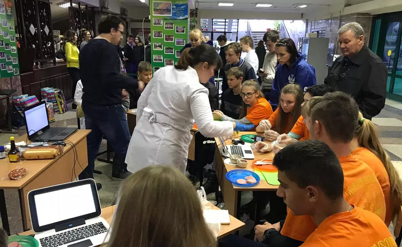 Вторая площадка стала образовательной территорией для школьников. Учащиеся могли выбрать для ознакомления три научных направления: «Исследования пищевых продуктов», «Агро» и «Эко».