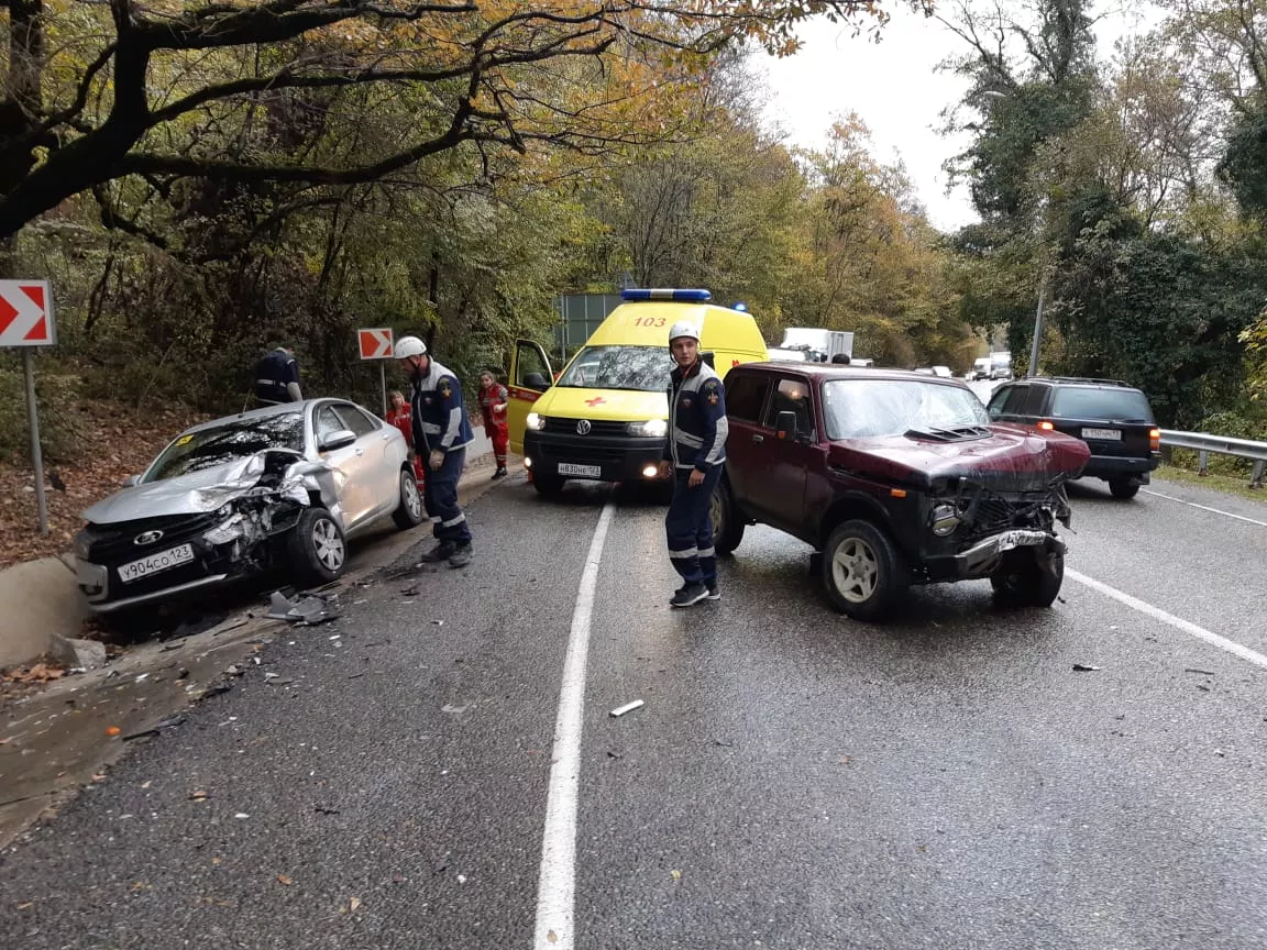 ДТП произошло утром на трассе М27 возле поселка Детляжка Лазаревского района. По предварительным данным, машину «Нива» занесло на скользкой дороге, она ударилась о бордюр и выехала на встречку. Там автомобиль столкнулся с Lada Vesta.