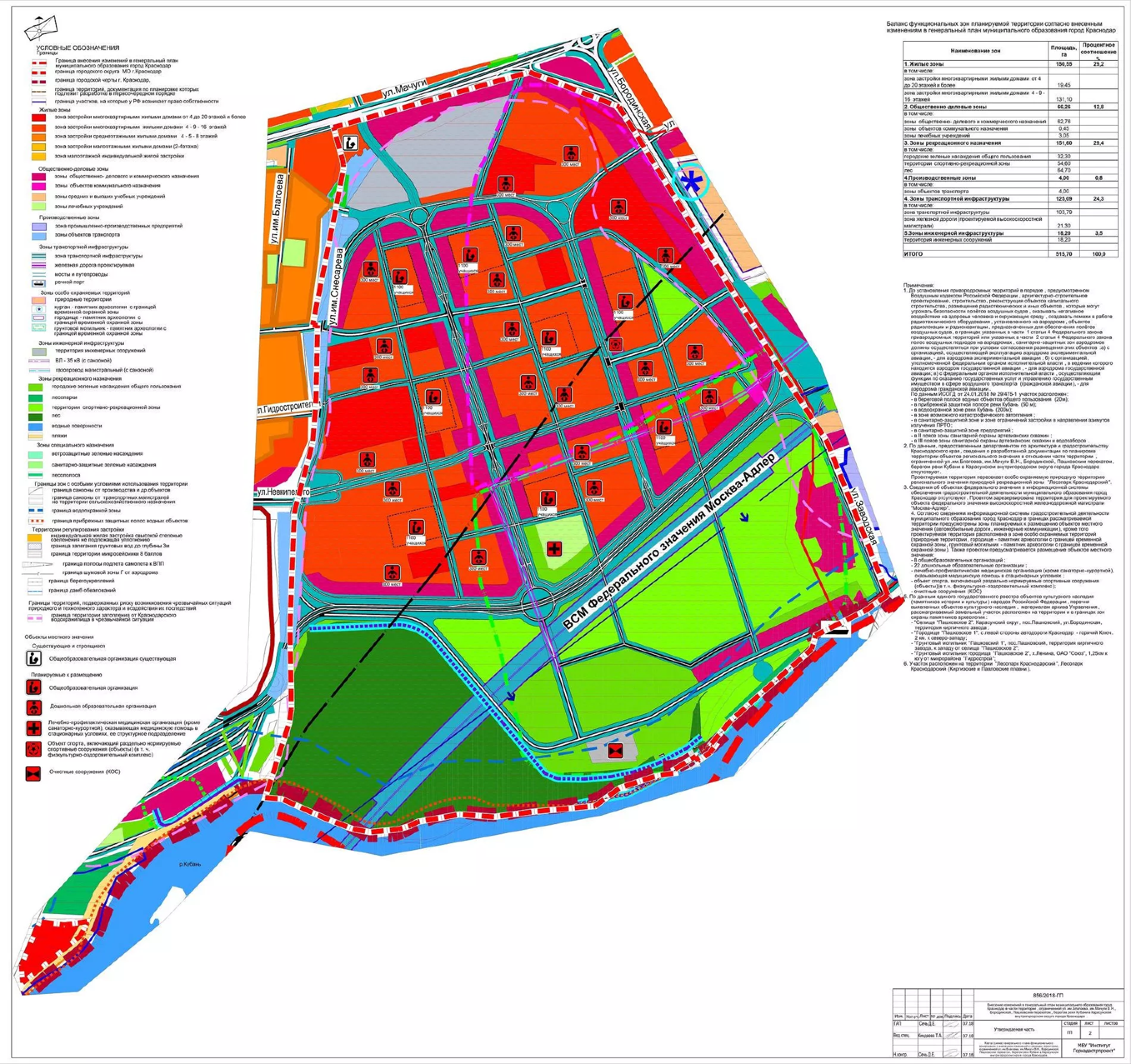 Из 515,7 га, на которых расположится новый район, 146 га займут жилые зоны, 66,7 га — общественно-деловые, 151,6 га — зоны рекреационного назначения, включающие скверы, парки, аллеи, а также лес. 151 га будет отведено под транспортную и инженерную инфраструктуру.