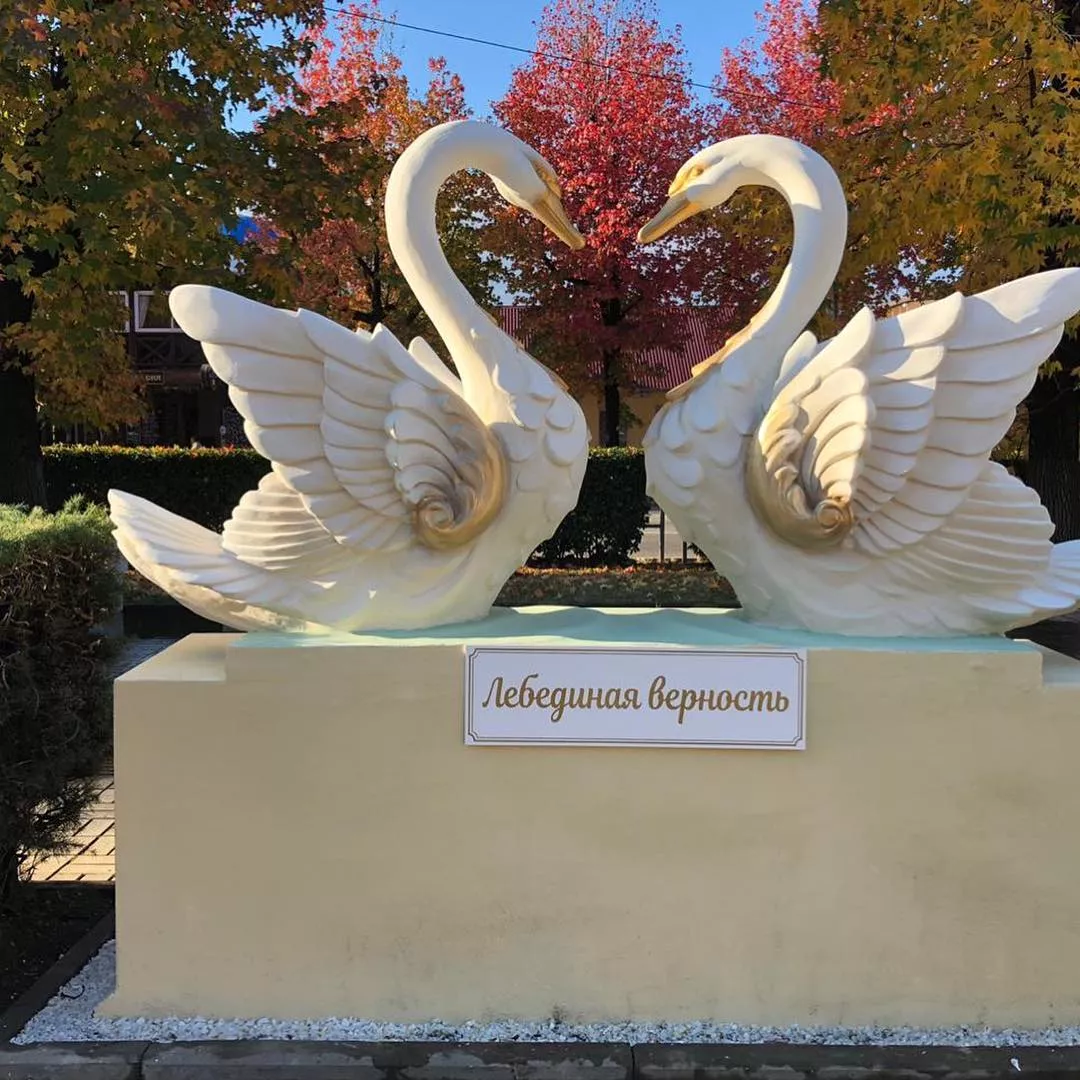 «В этот раз скульптор назвал свою работу "Лебединая верность", и эта трогательная композиция стала популярна буквально с момента ее установки на площади. После торжественного открытия скульптуры к ней сразу же выстроилась очередь из желающих сфотографироваться», — сообщил глава администрации Адлерского района Сочи Денис Юрковский в своем инстаграме.