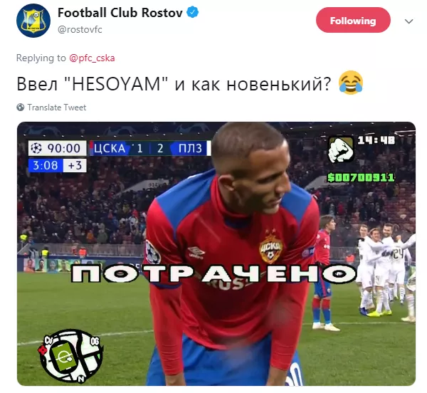 «Потрачено» и «Охладите свои атаки»: «Ростов» провел матч с ЦСКА в стиле игры GTA: San Andreas
