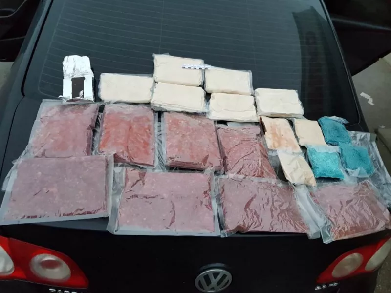 В Кореновском районе полицейские остановили автомобиль с 22-летним парнем за рулем. При осмотре машины, которую водитель арендовал в Краснодаре, в багажнике обнаружили несколько пакетов и свертков с разными порошкообразными пластичными веществами, а также с кристаллическими веществами голубого и бежевого цветов.