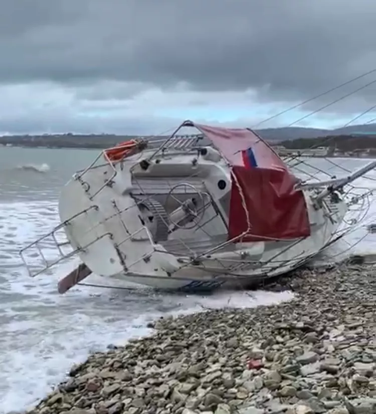 Около 1:40 в акватории Геленджикской бухты в 10-15 метрах от берега нашли перевернутую яхту «Вега», в это время в море был шторм. На борту судна находилось пять человек, никто не пострадал.