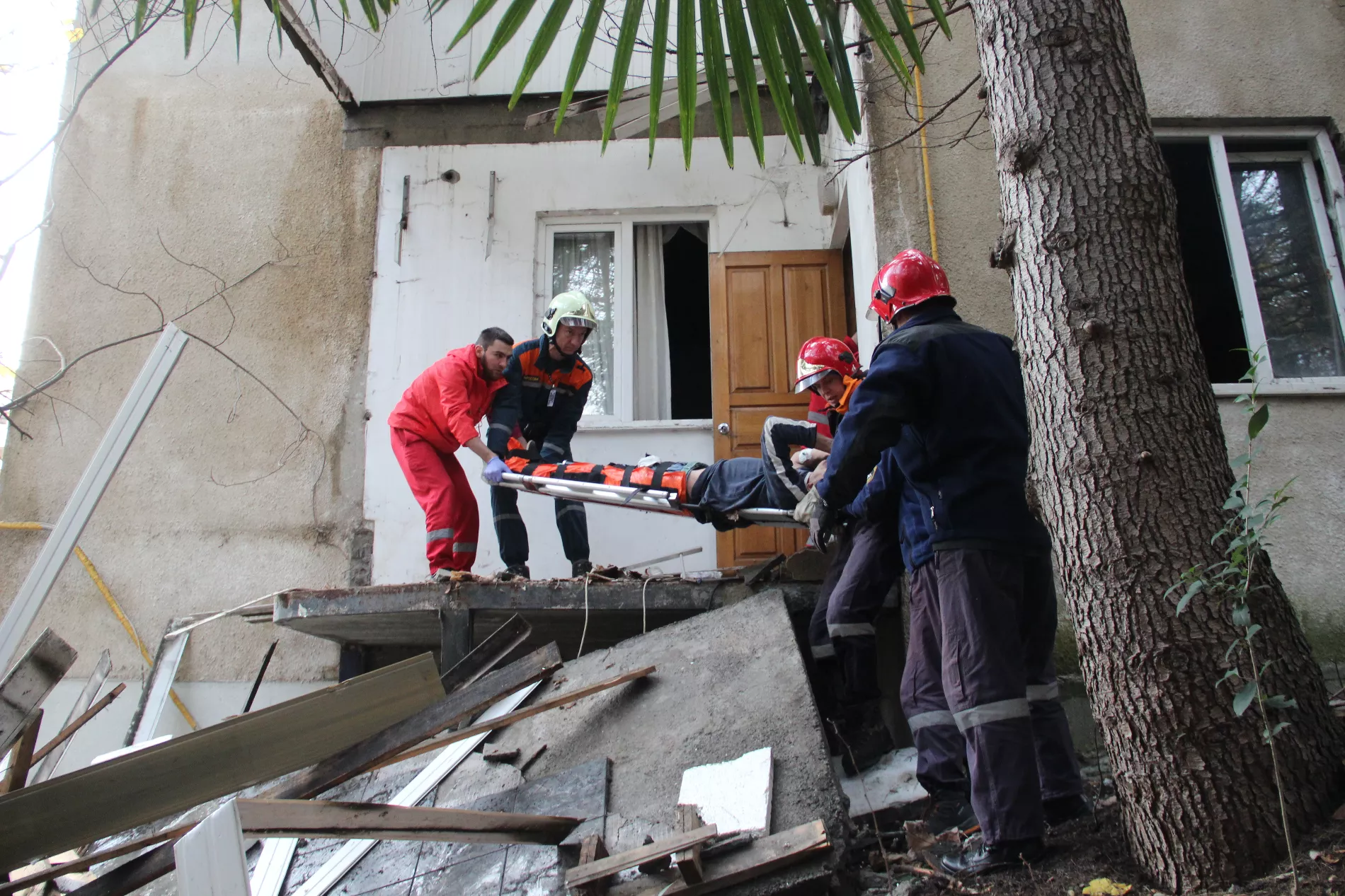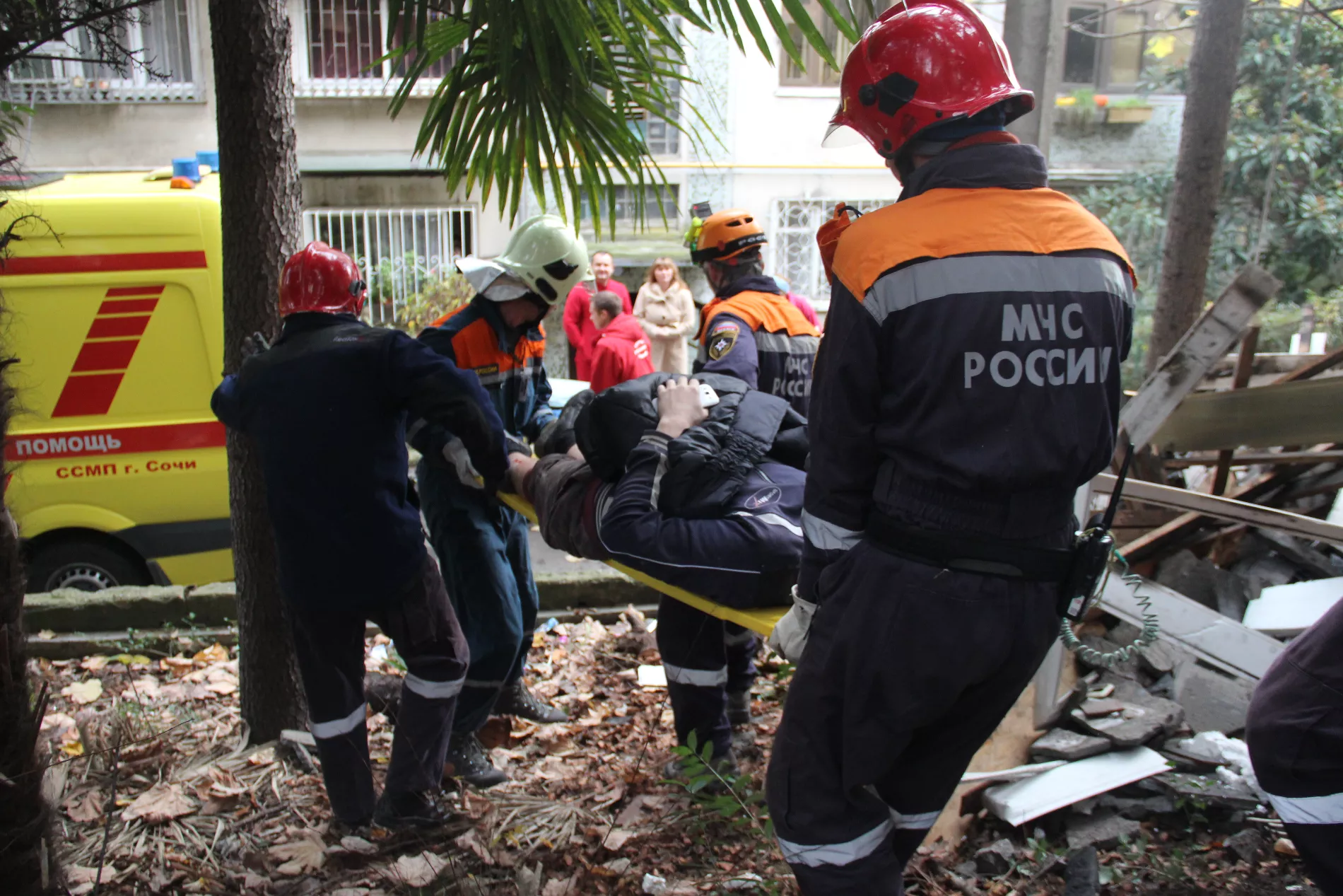 Спасатели ЮРПСО МЧС России извлекли мужчин из-под завалов и доставили к автомобилю скорой помощи.