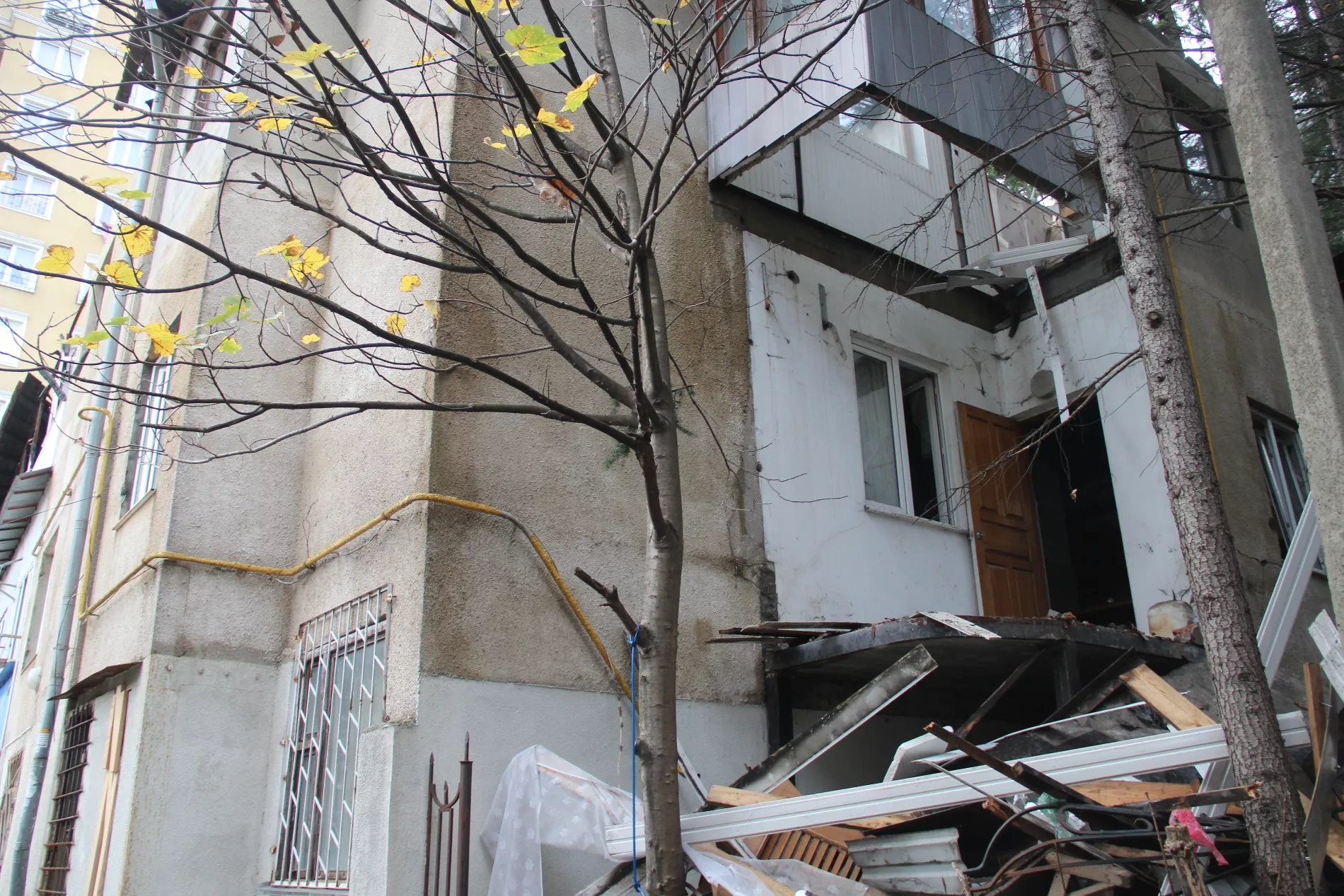 Несчастный случай произошел на улице Цурюпы. Спасателям сообщили об этом в 12:27. Им рассказали, что под завалами есть люди.