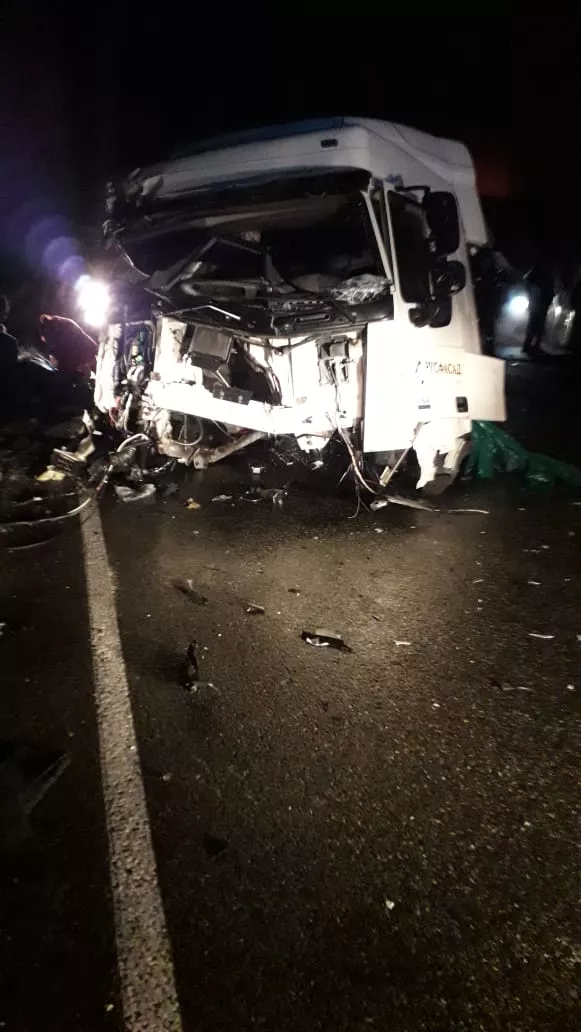Два человека доставили в больницу после столкновения двух фур ночью 14 декабря на трассе возле Горячего Ключа