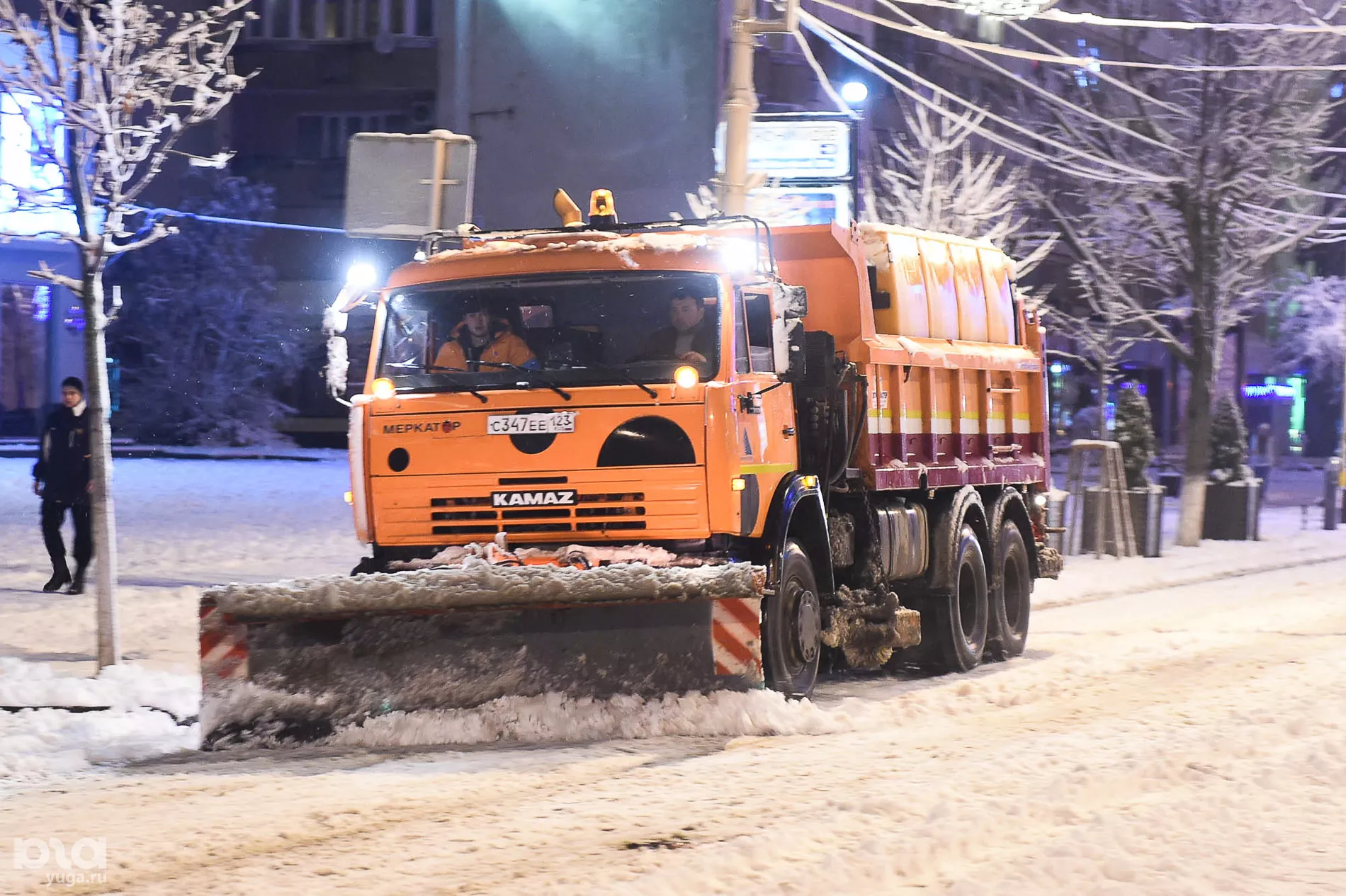 В Краснодаре ночью 16 декабря дороги и мосты расчистили от наледи, которая возникла после дождя и снега