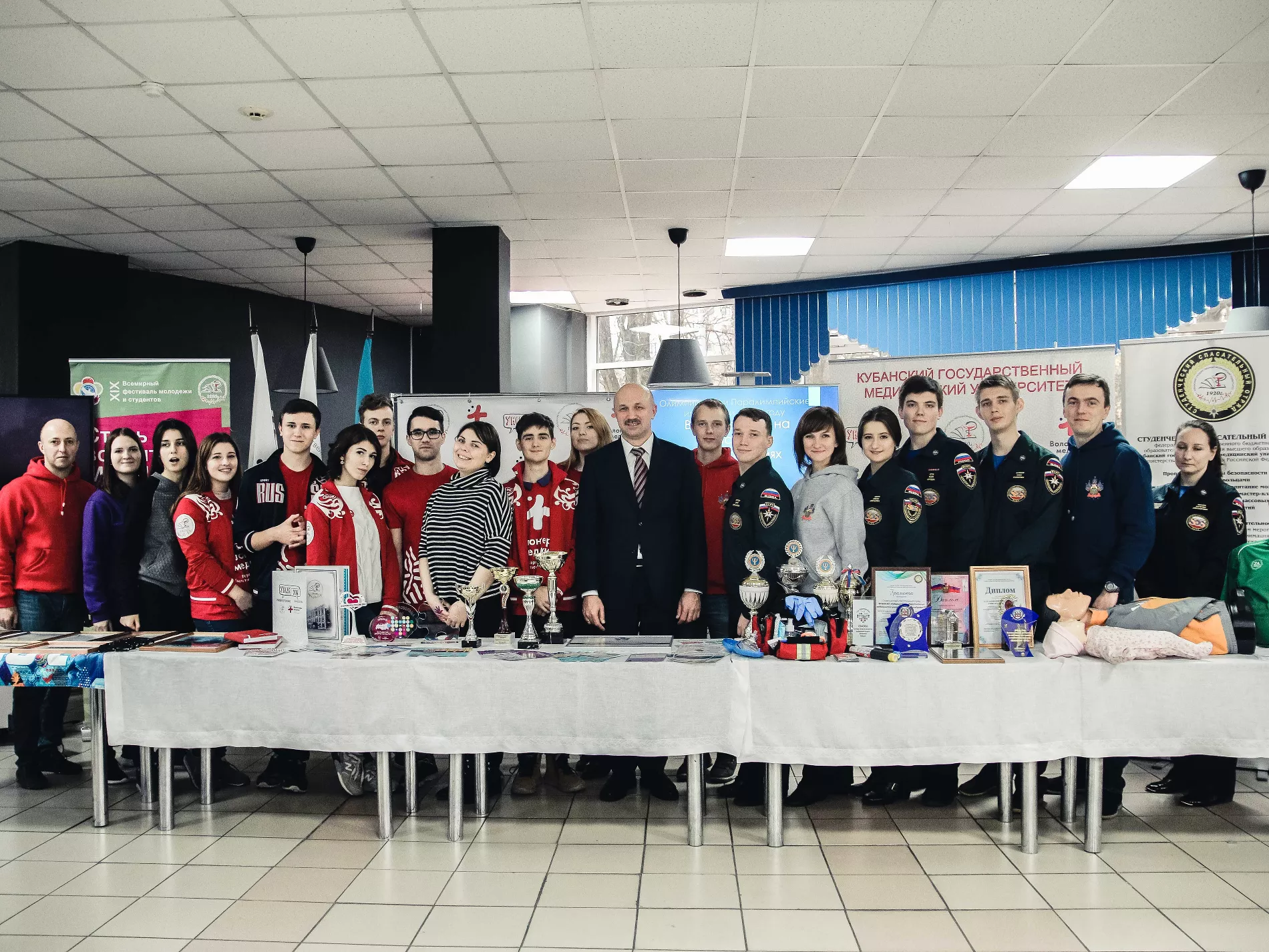 На мероприятии организовали выставку волонтерских центров Краснодарского края, на которой свои достижения и итоги работы представили волонтерский центр КубГМУ и студенческий спасательный отряд КубГМУ. Добровольцы и спасатели рассказали гостям выставки о направлениях своей работы и о технических достижениях университета, усовершенствованном высокотехнологичном Центре практических навыков и его возможностях.