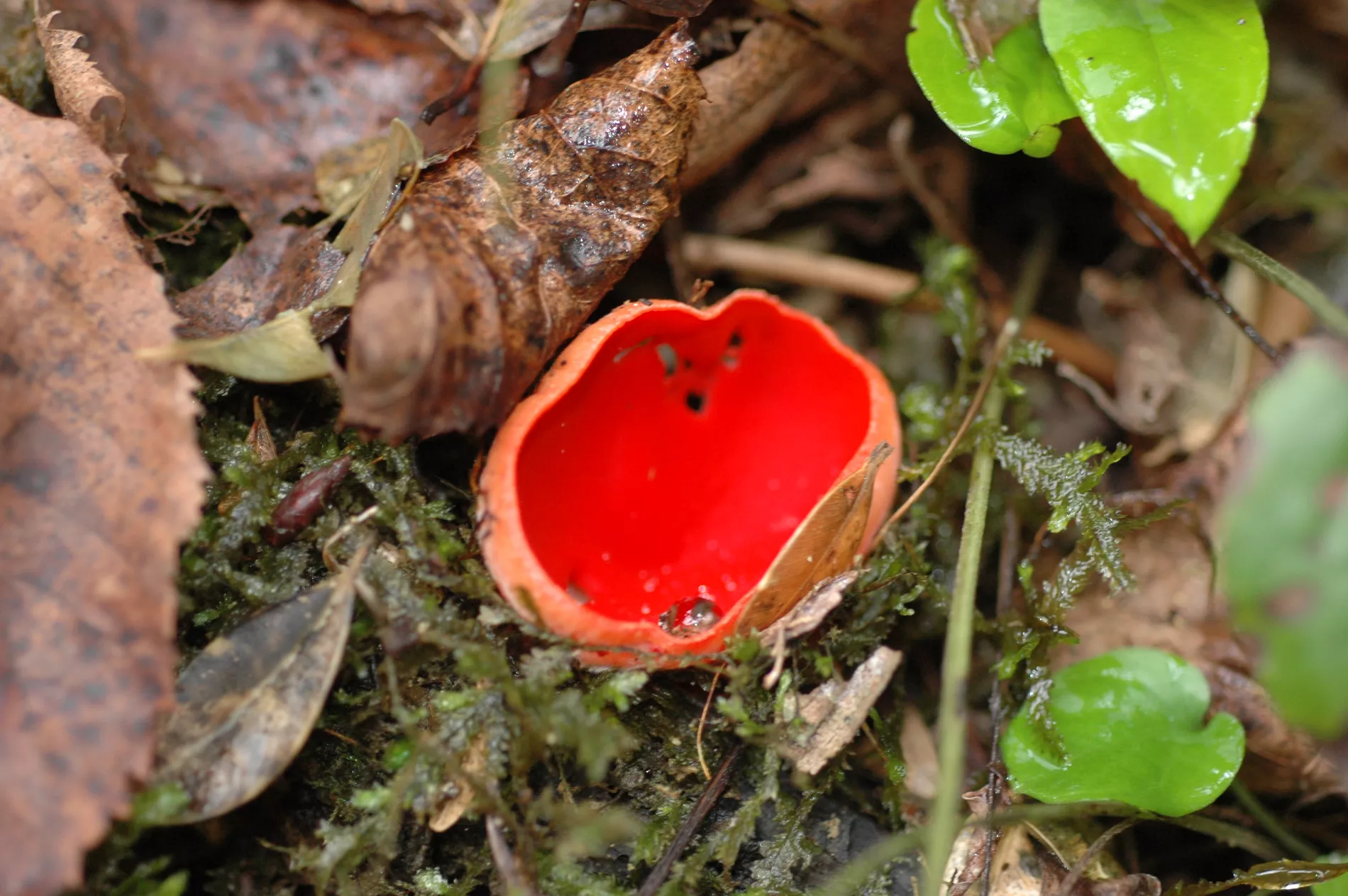 Также специалисты нацпарка заметили гриб-блюдечко ярко-красное. Раньше он назывался пецица красная или алая эльфова чаша. Размер гриба — 1–3 см, у него чашеобразное упругое тело, ярко-красное сверху и белое снизу. Грибы-блюдечки встречаются в нацпарке редко, в основном во влажных замшелых ущельях.