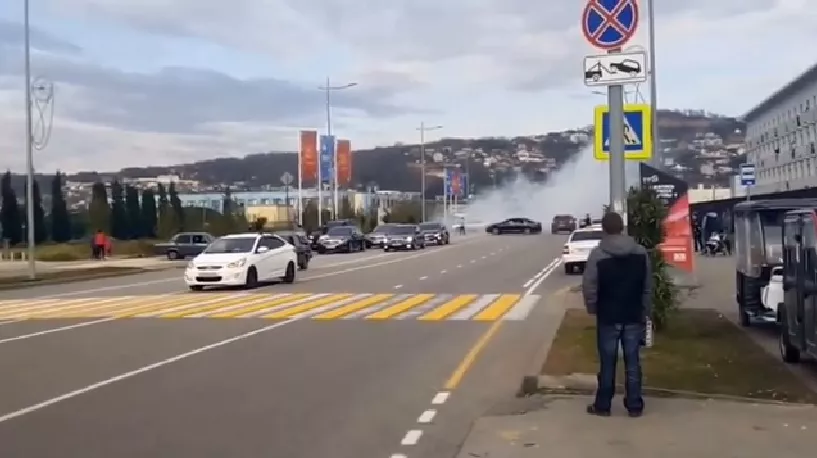 В сеть попало видео дрифта на проезжей части в Сочи, который устроили автомобили свадебного кортежа
