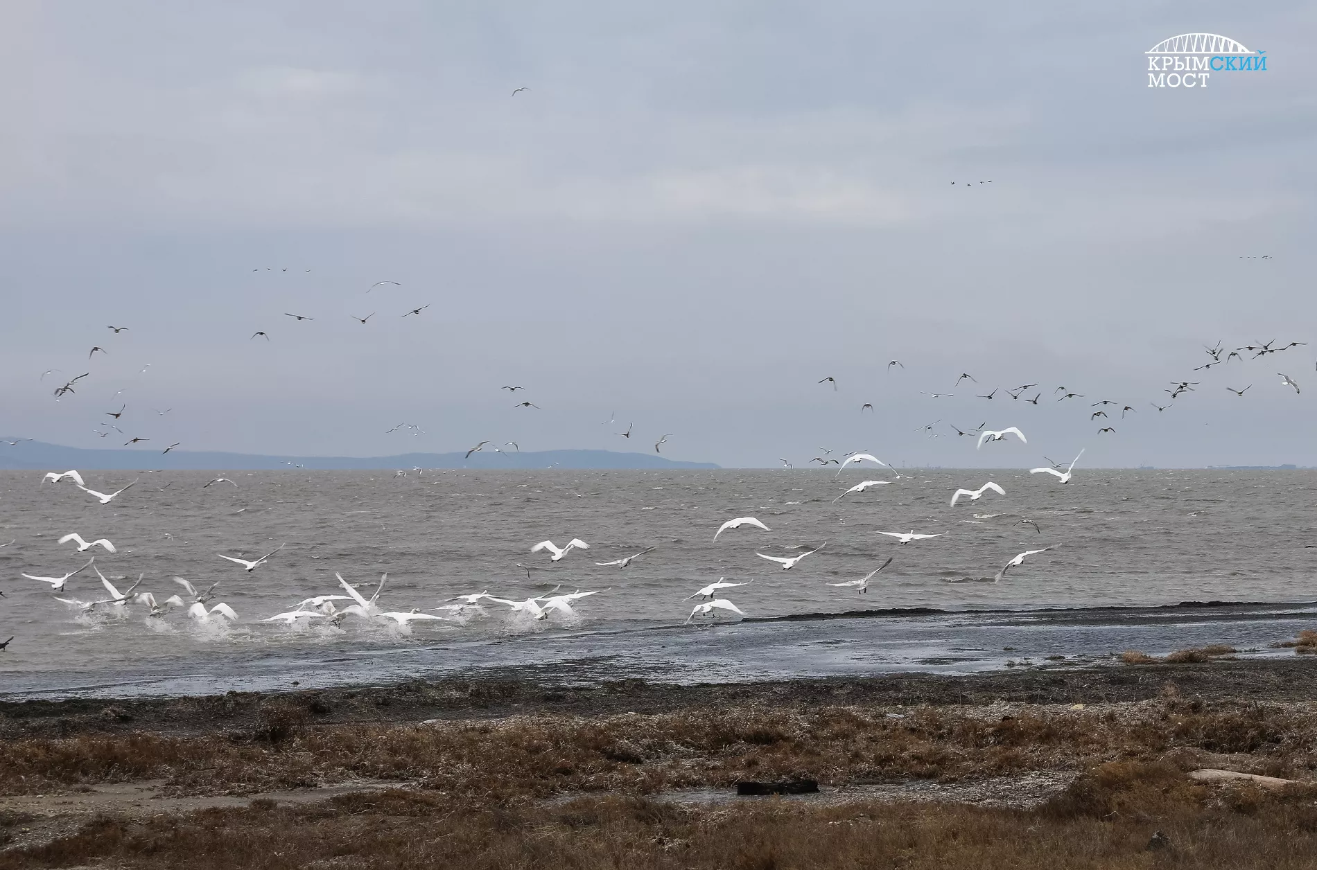 Эколог компании «СГМ-Мост» Анна Бычкова рассказала, что на Тузле зимуют лебеди, утки, цапли, чайки, бакланы.