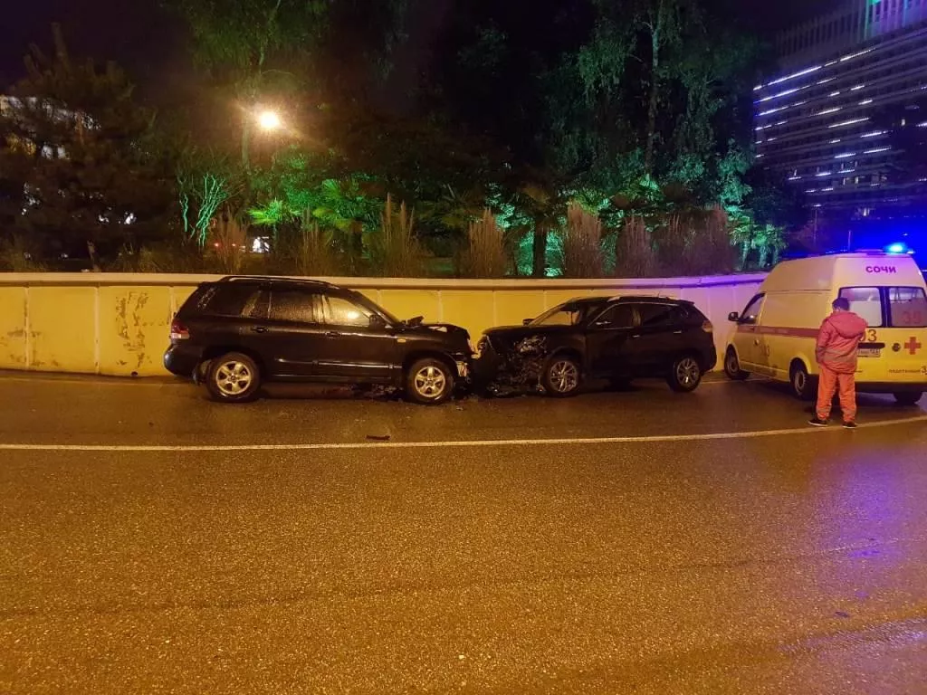 На улице Театральной в Сочи ночью 8 января произошла автомобильная авария, в которой пострадали люди