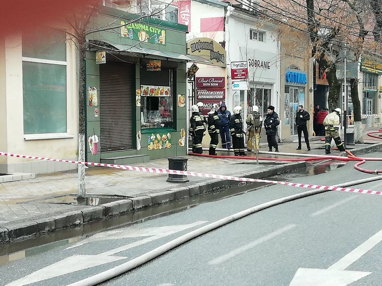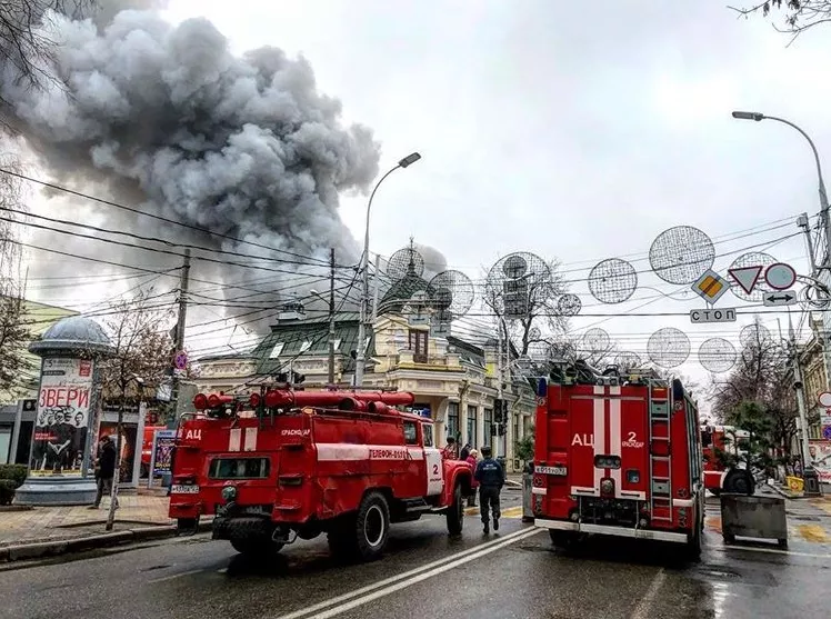 В соцсетях появились сообщения, что пожар произошел в павильоне «Шаурма City». Корреспондент Юга.ру передает, что возгорание произошло в одном из павильонов внутри комплекса «Торговый дворик». По информации ТАСС, загорелся чердак одноэтажного здания магазина тканей.