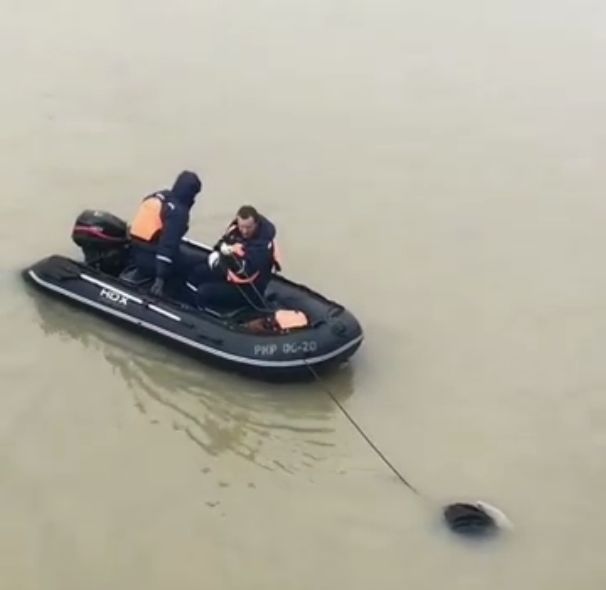 Днем 23 января в сети появились видео, на которых видно, как сотрудники краснодарской «Службы спасения» на лодке транспортируют тело женщины. Первоначально оно находилось под Тургеневским мостом, его перевезли к Кубанской набережной и достали из воды.