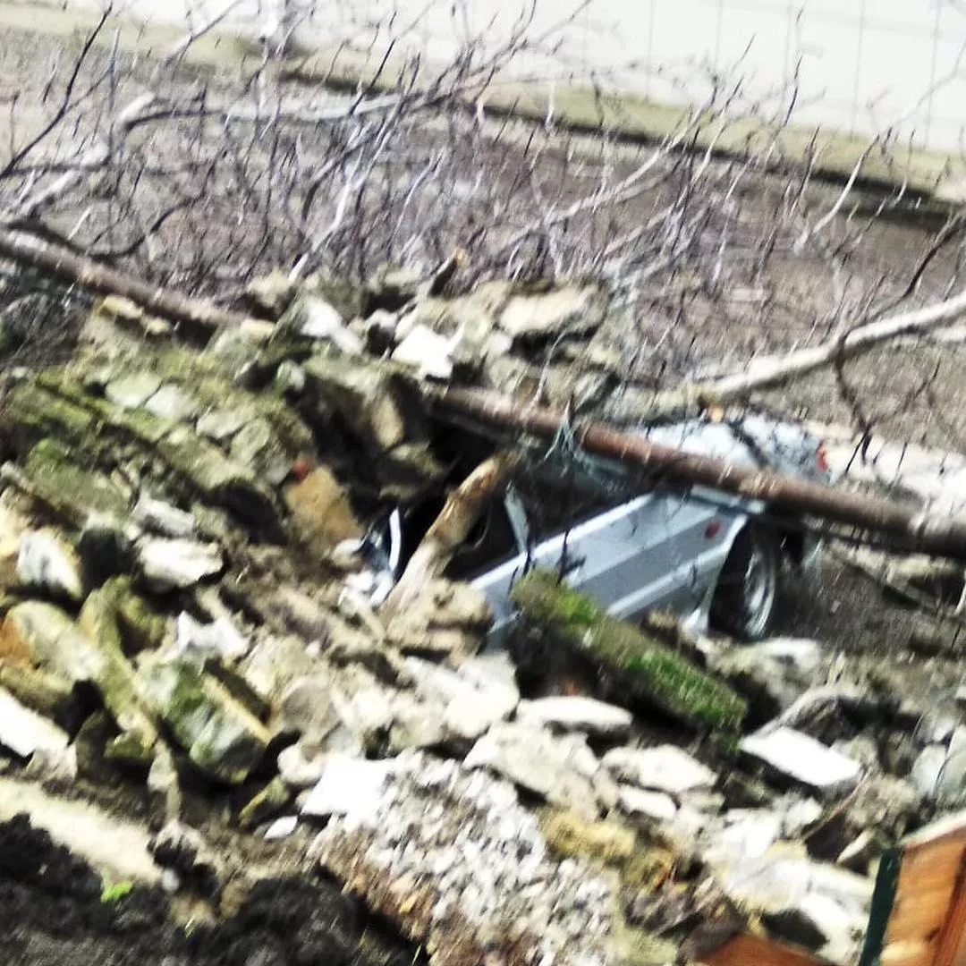 В Новороссийске 21 января во время земляных работ перевернулась землеройная машина, придавив две полицейские машины