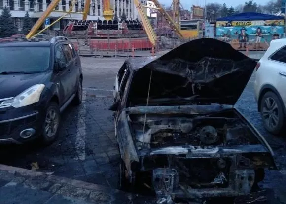 Припаркованный у Театральной площади автомобиль загорелся около 5:40. Прибывшие к месту ЧП пожарные потушили огонь в течение 10 минут.