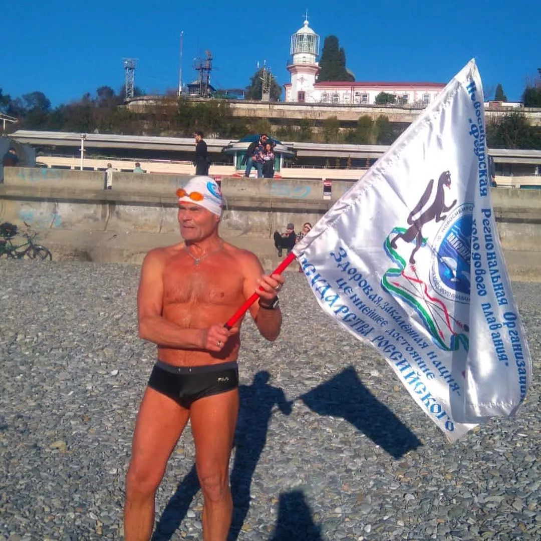 В канун пятилетия со дня открытия зимних Олимпийских игр в Сочи пенсионер из Омска проплыл по морю 2014 метров