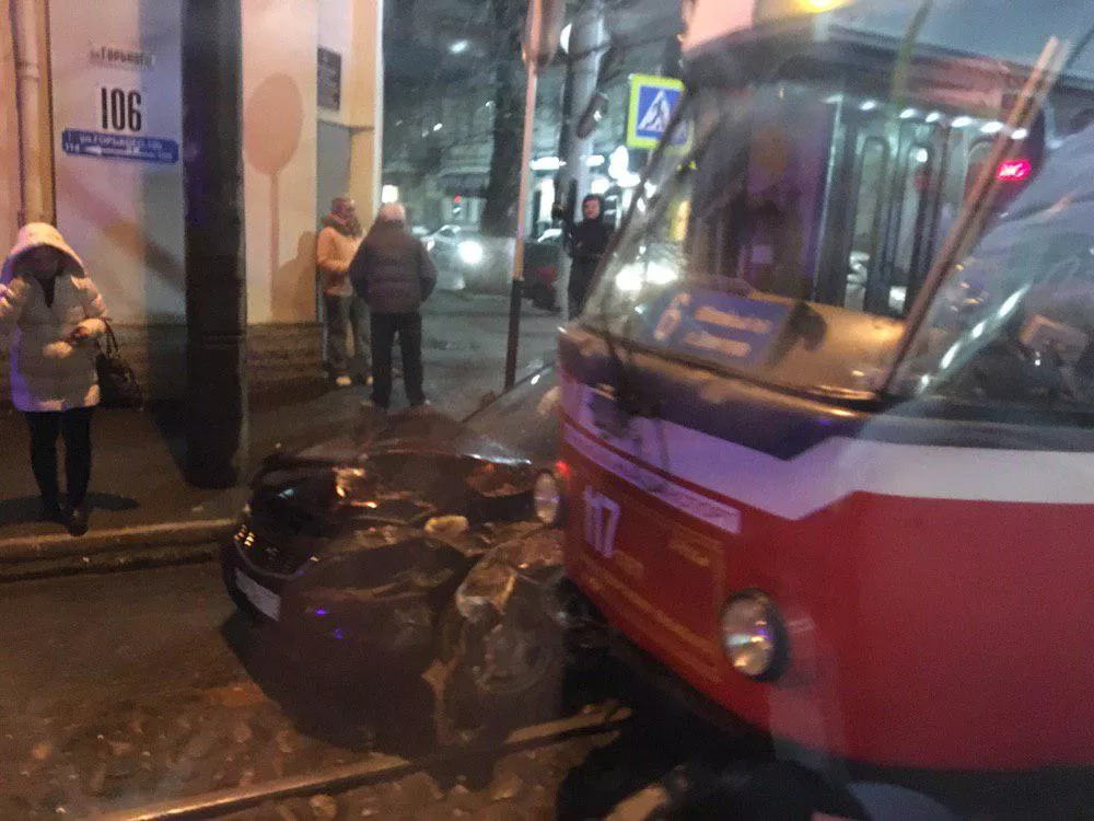 По словам очевидцев, инцидент произошел около 21:00. На перекрестке столкнулись легковой автомобиль и трамвай, следовавший по маршруту № 6.