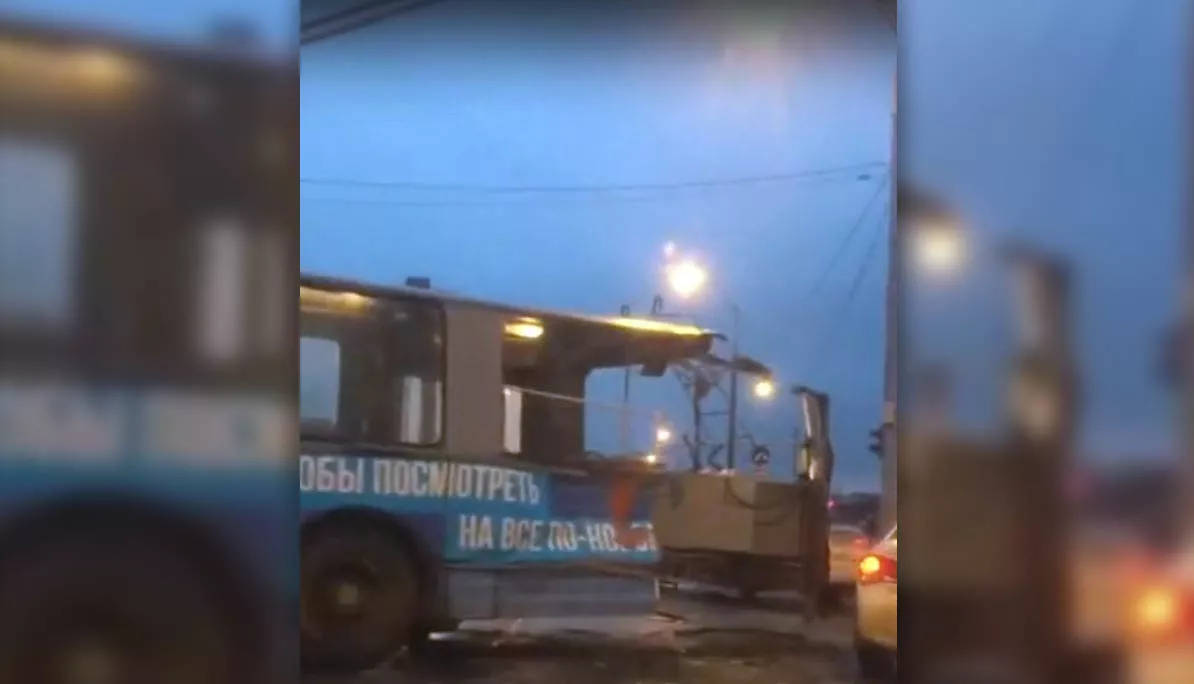 Очевидцы ДТП опубликовали в социальных сетях видео с места аварии. На кадрах видно, как грузовик, перевозивший кирпич, снес заднюю часть троллейбуса. От удара общественный транспорт перекрыл дорогу.