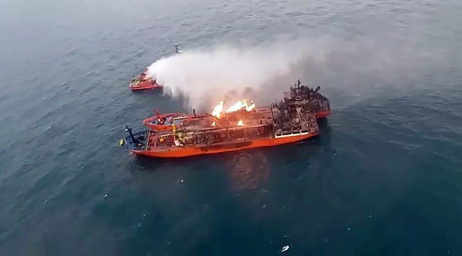 Как писали Юга.ру, два иностранных танкера со сжиженным газом Candy и Maestro загорелись в районе Керченского пролива вечером 21 января. Погибли десять человек, всего на кораблях было 32 моряка из Турции и Индии. Еще десять человек пропали без вести, по факту гибели людей возбудили уголовное дело. Предварительной причиной пожара назвали нарушение правил безопасности.