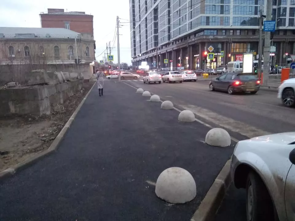 «Длина тротуара составляет около 40 метров, ширина — около 4 метров. Пешеходная часть полностью заасфальтирована, на всем протяжении установлены антипарковочные бетонные полусферы», — отчитался спустя неделю директор департамента транспорта и дорожного хозяйства Владимир Архипов.